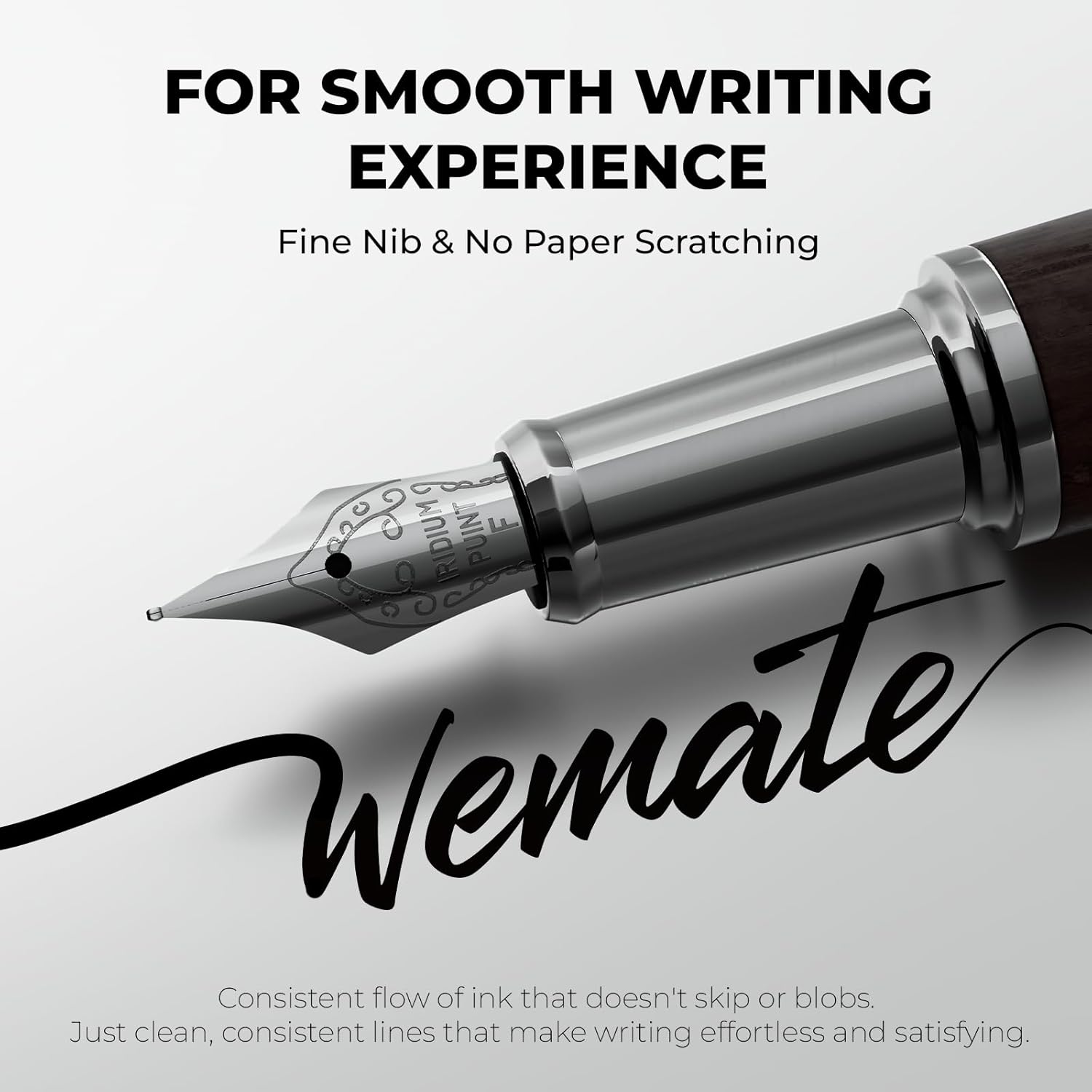 - [All inclusive Refillable Fountain Pen Set] Includes 1PCS Wood Fountain pen,1PCS Ink converter, 10PCS blue ink cartridges, 10PCS black ink cartridges, WEMATE fountain pen set liberates your writing journey. Never pause to hunt for ink — write freely for weeks, keeping your ideas flowing wherever inspiration strikes.