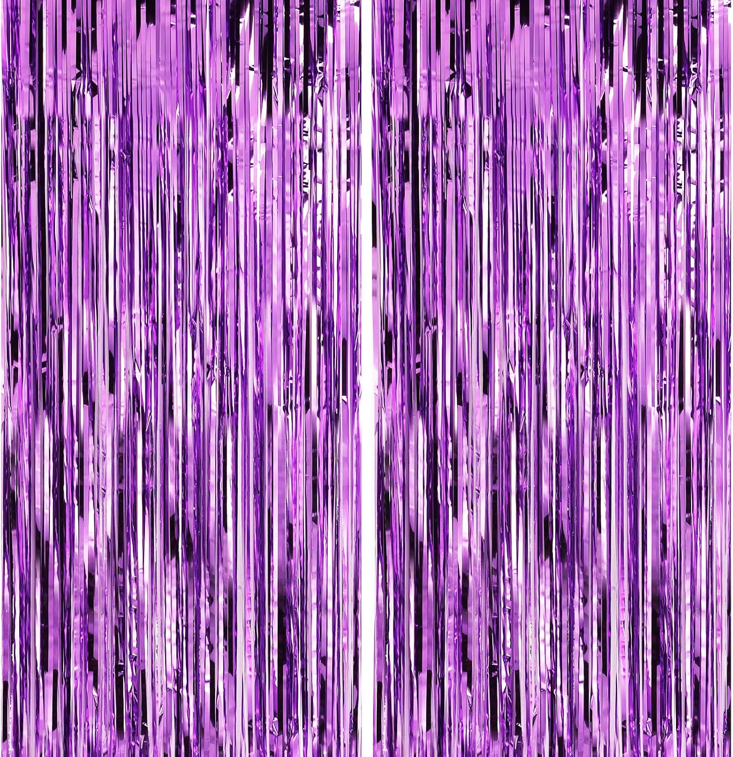 2 Pack Purple Foil Fringe Curtains Door Streamers Party Decorations 3.3 x 8.2 ft, Tinsel Curtain Fringe Backdrop for Parties, Door Fringe Birthday Streamers, Photo Booth Backdrops, Party Decor
