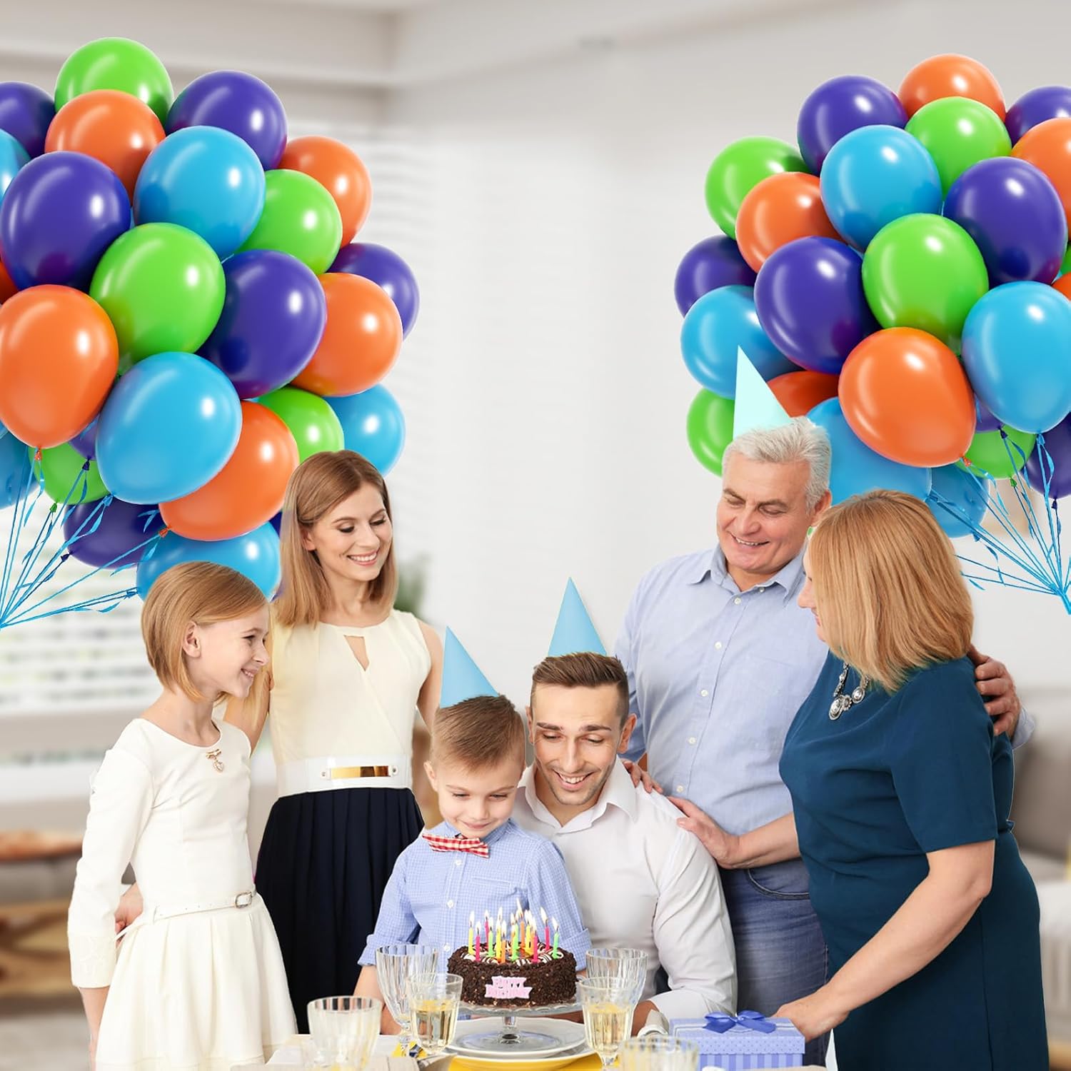 - What You Will Get: The package includes 12inch purple balloonsx15, 12inch light green balloonsx15, 12inch orange balloonsx15, 12inch blue balloonsx15, glue dotsx20, blue ribbonx1