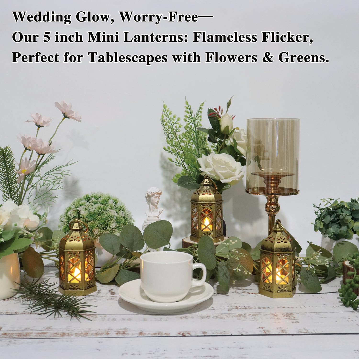 Mini Lantern with Flickering LED Candles for Halloween, LLQ (8Pack-5Inch) Vintage Decorative Candle Lanterns for Christmas Wedding Party Baby Shower Table Centerpiece, Xmas Tree Hanging Ornaments