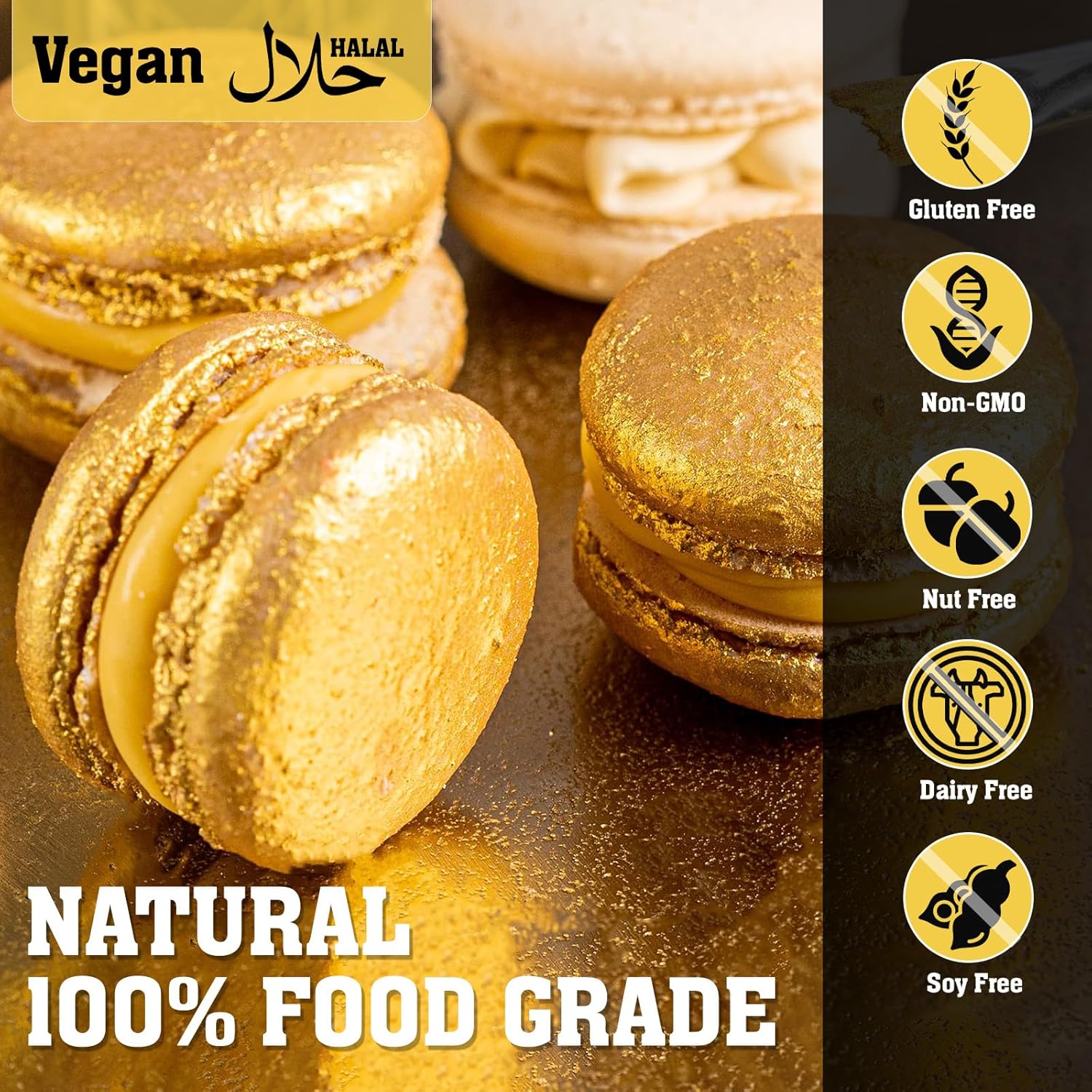 - 【Easy to Use & Versatile】: The edible glitter can simply apply dry with a brush, or mix with alcohol, lemon extract or oil-based flavorings for spray or brush application, or even mix into beverages. These edible luster dust is perfect for decorating frosting, fondant, whipped cream, cocktails, mocktails, champagne, and chocolates with a stunning gold shimmer effect.
