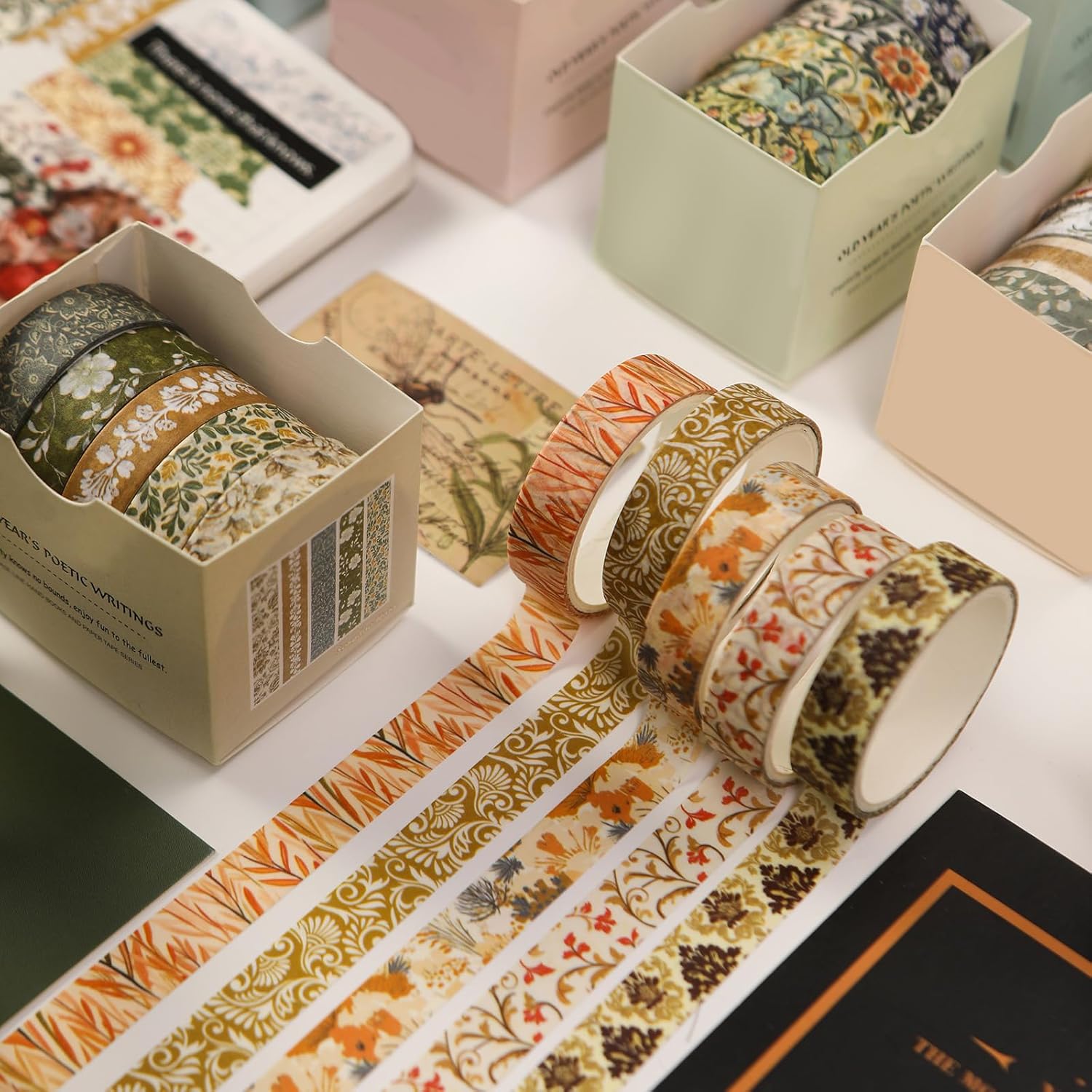 YUBBAEX 60 Rolls Value Washi Tape Pack Retro Arts Masking Tape Basic Patterns Decorative for DIY Crafts, Bullet Journal Supplies, Planners, Scrapbook, Card/Gift Wrapping (Retro Baroque)