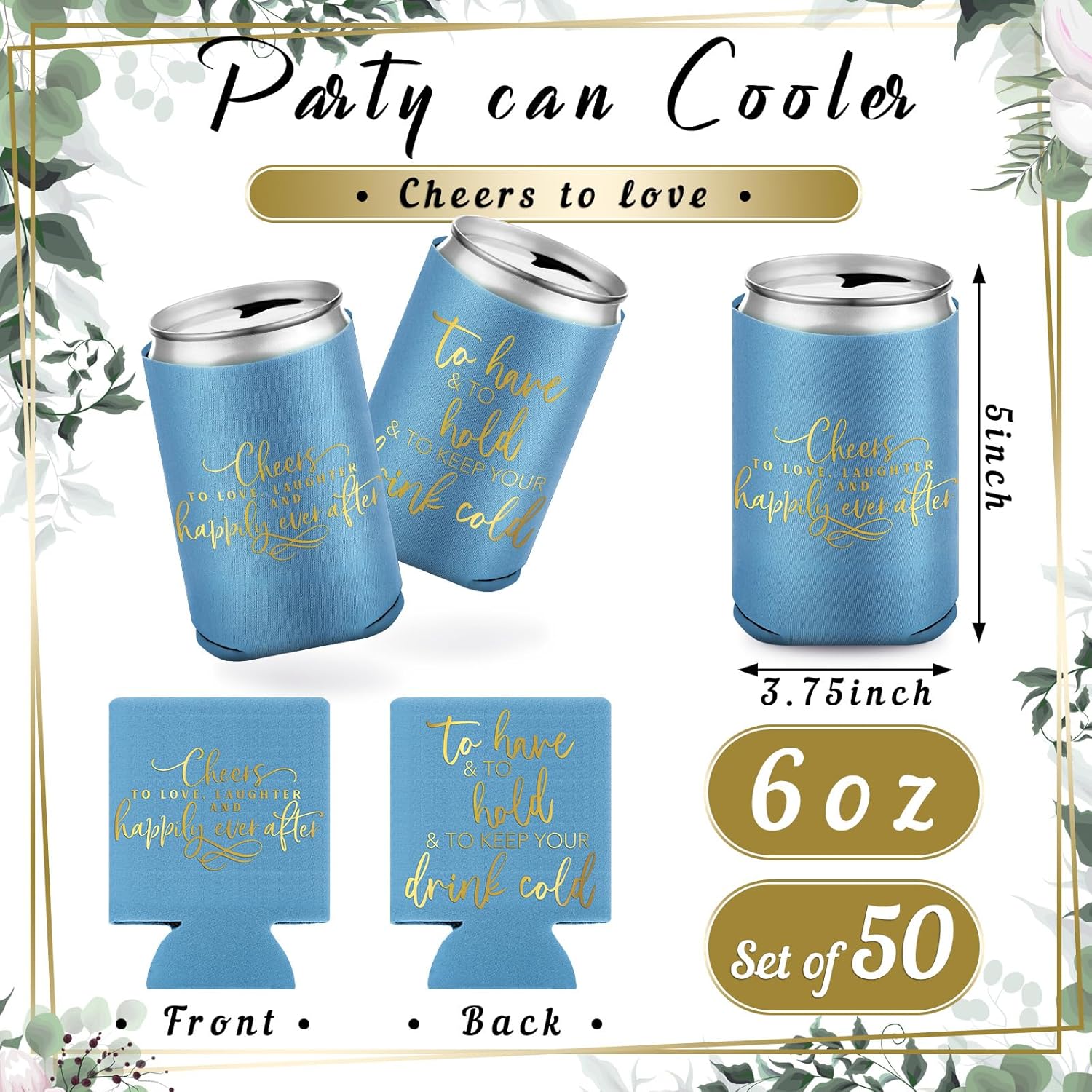 - Satisfying Party Package: our huge package containing 50 pieces of wedding can cooler decorations; Make every drink a celebration with our haze blue and white can coolers; They are suited to uplift the atmosphere at weddings, bridal showers, and bachelorette parties