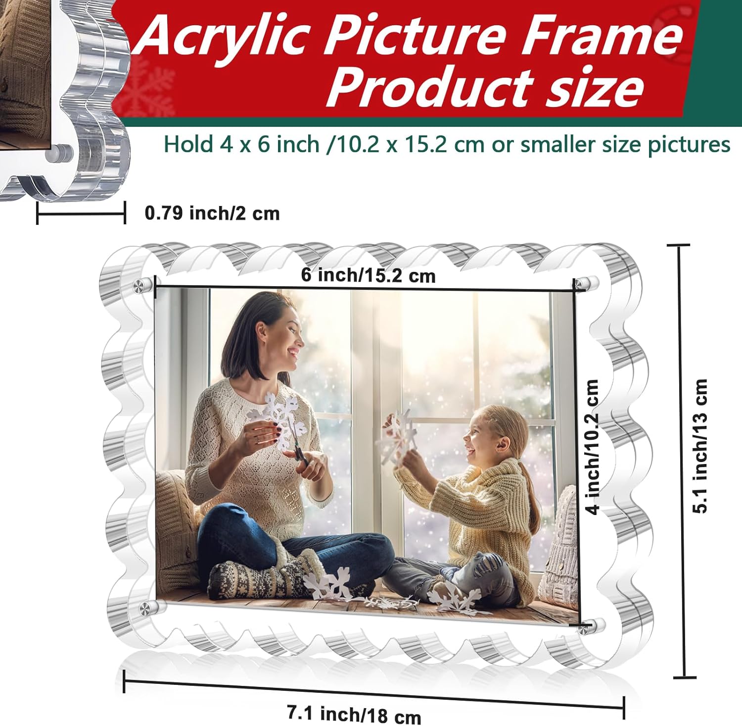 - High Definition Acrylic Picture Frame, Restoring authenticity - Selected high-transparency acrylic panels with a light transmittance of 95%, no color cast or distortion, perfectly presenting the colors and details of photos, making every picture as clear and vivid as the first time you saw it. Its frameless design and clear plexiglass material make it the perfect choice for displaying your cherished photos