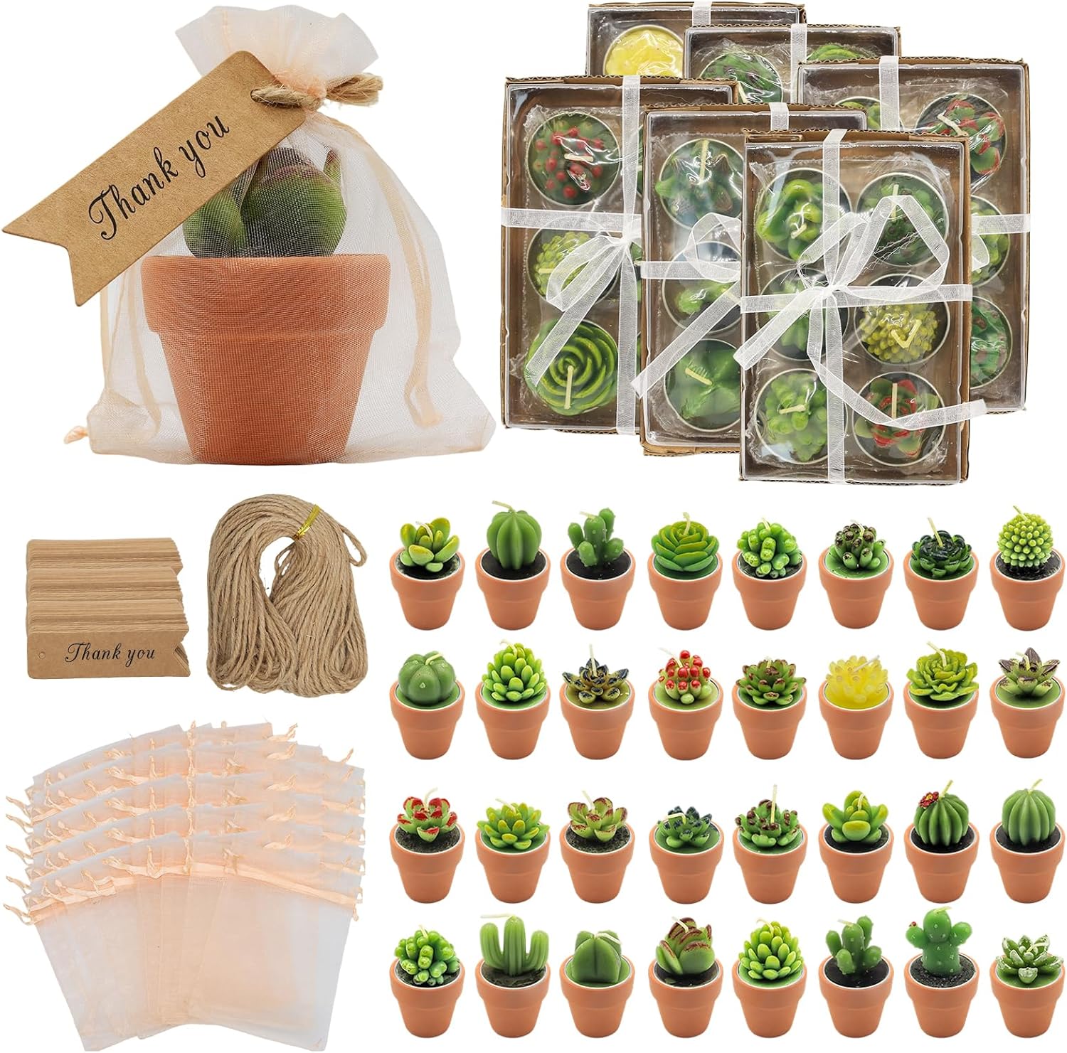- 【Exquisite Gift-packaging】The baby shower candles favors for guests contains 36 cactus candles terracotta holders and comes with an equal number of semi transparent cloth bags, thank-you labels, and some hemp ropes to meet your exquisite appearance needs as a present
