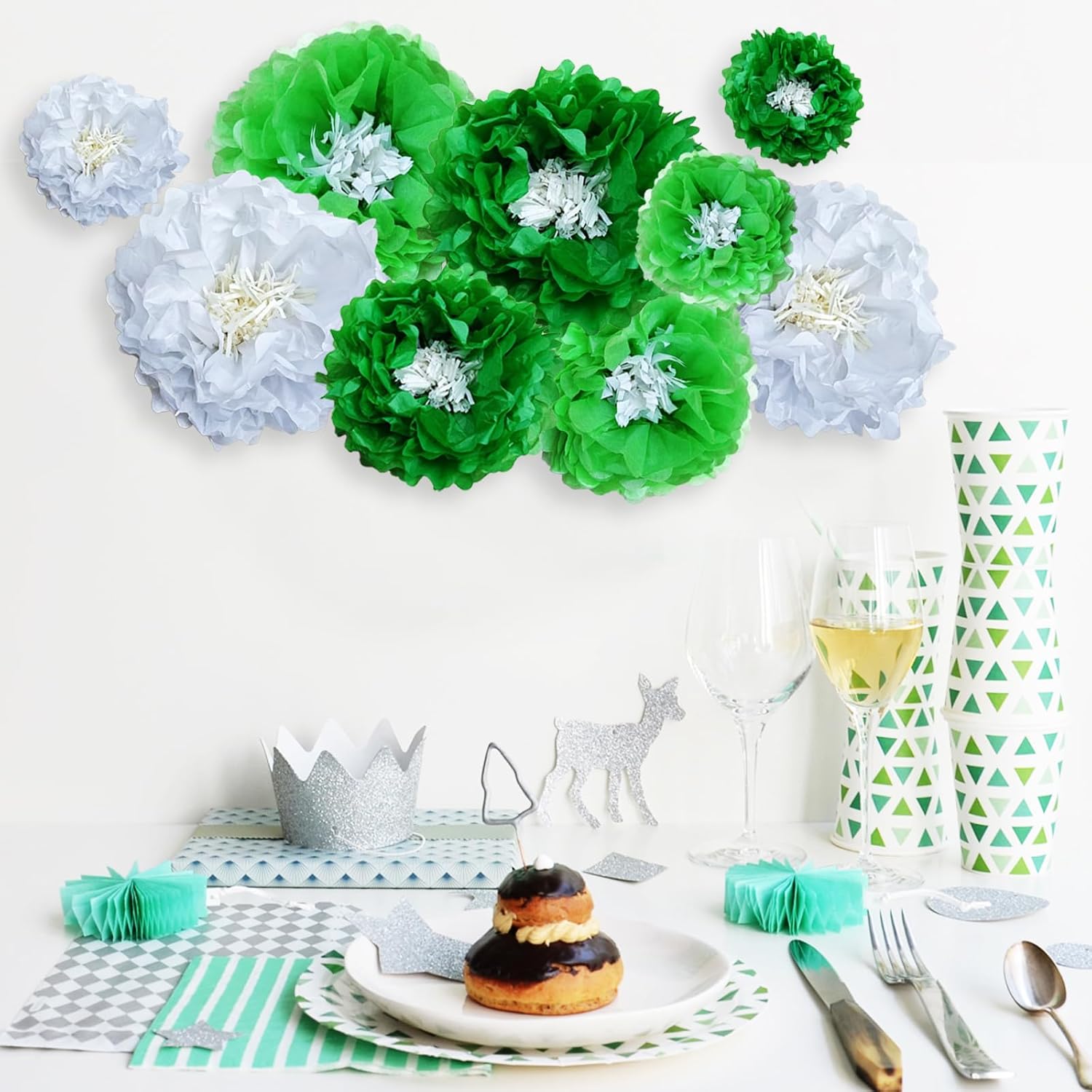 Green Paper Flowers Decoration for Boho Wedding, Birthdays, Bridal or Baby Showers,Engagement, Greenery Party Decor