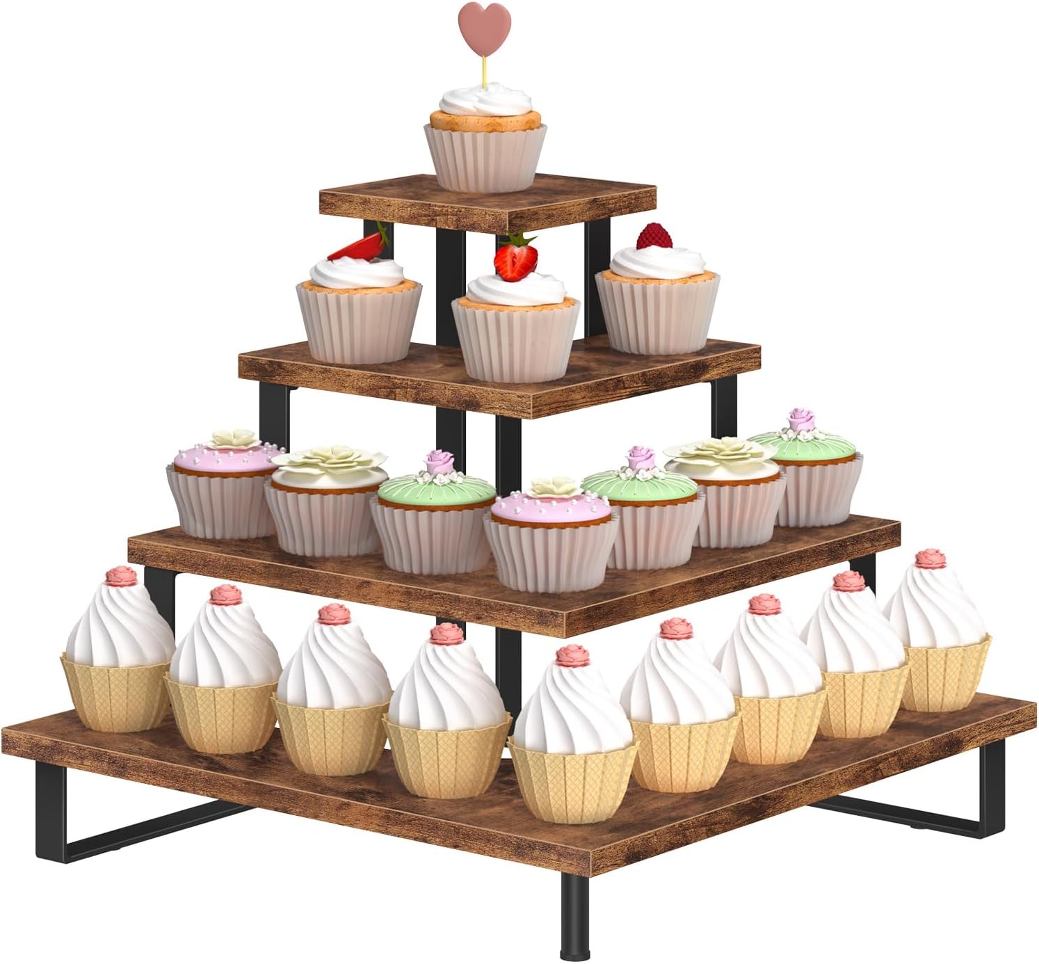 - 【Versatile and Combinable Design】Looking for a reliable cupcake tier stand? Our 4 tier display risers makes your products stand out! Combine multiple display stands to create unique layouts and design an impressive display space.
