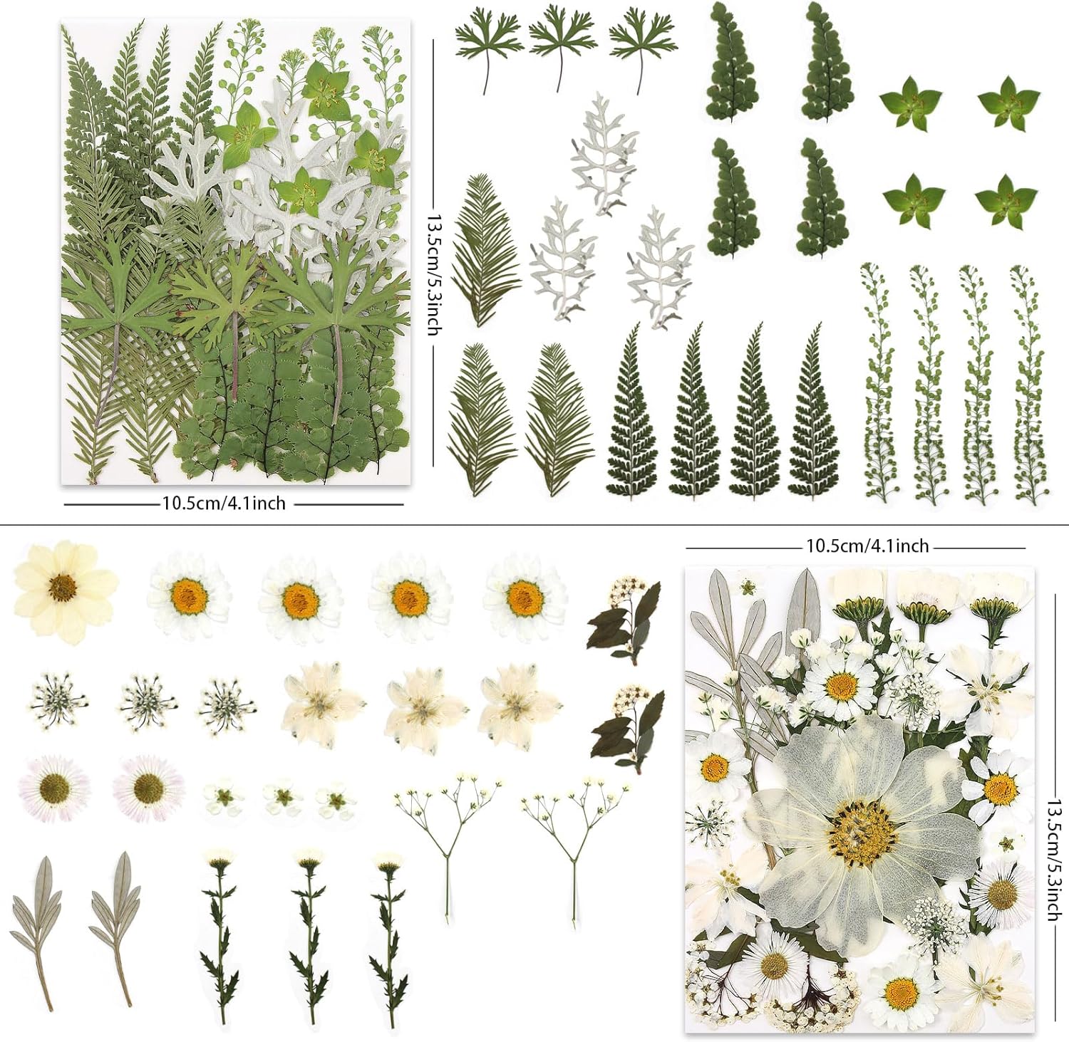- Pure & Natural Dried Flowers:100P dried pressed flowers for crafts in elegant white with green foliage. Handpicked, naturally preserved, keep soft beauty. Perfect for resin art, jewelry, home decor—ideal for tranquil DIY projects