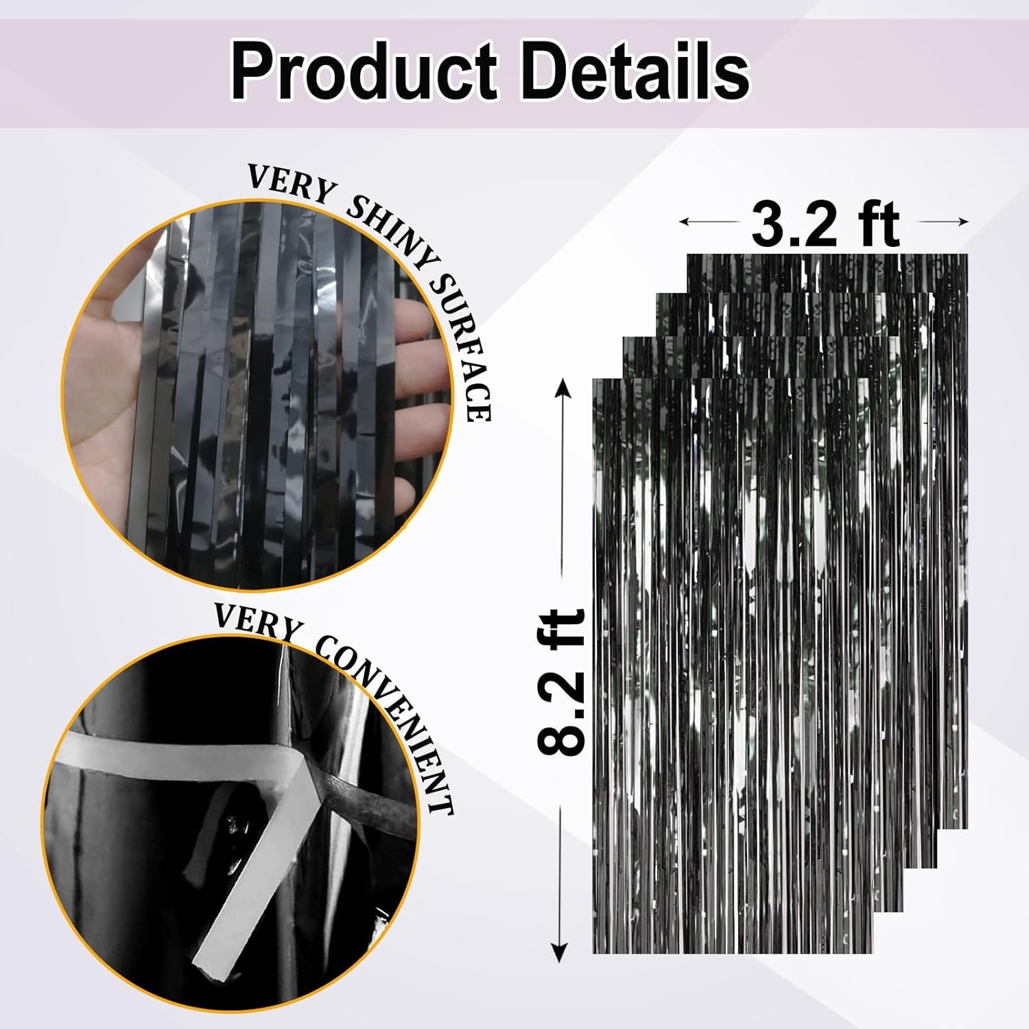 - 🖤【BLACK TINSEL BACKDROP】Value pack of 4, each measuring 3.2ft x 8.2ft (1m x 2.5m), Perfect Size for creating backdrops or photo booths.