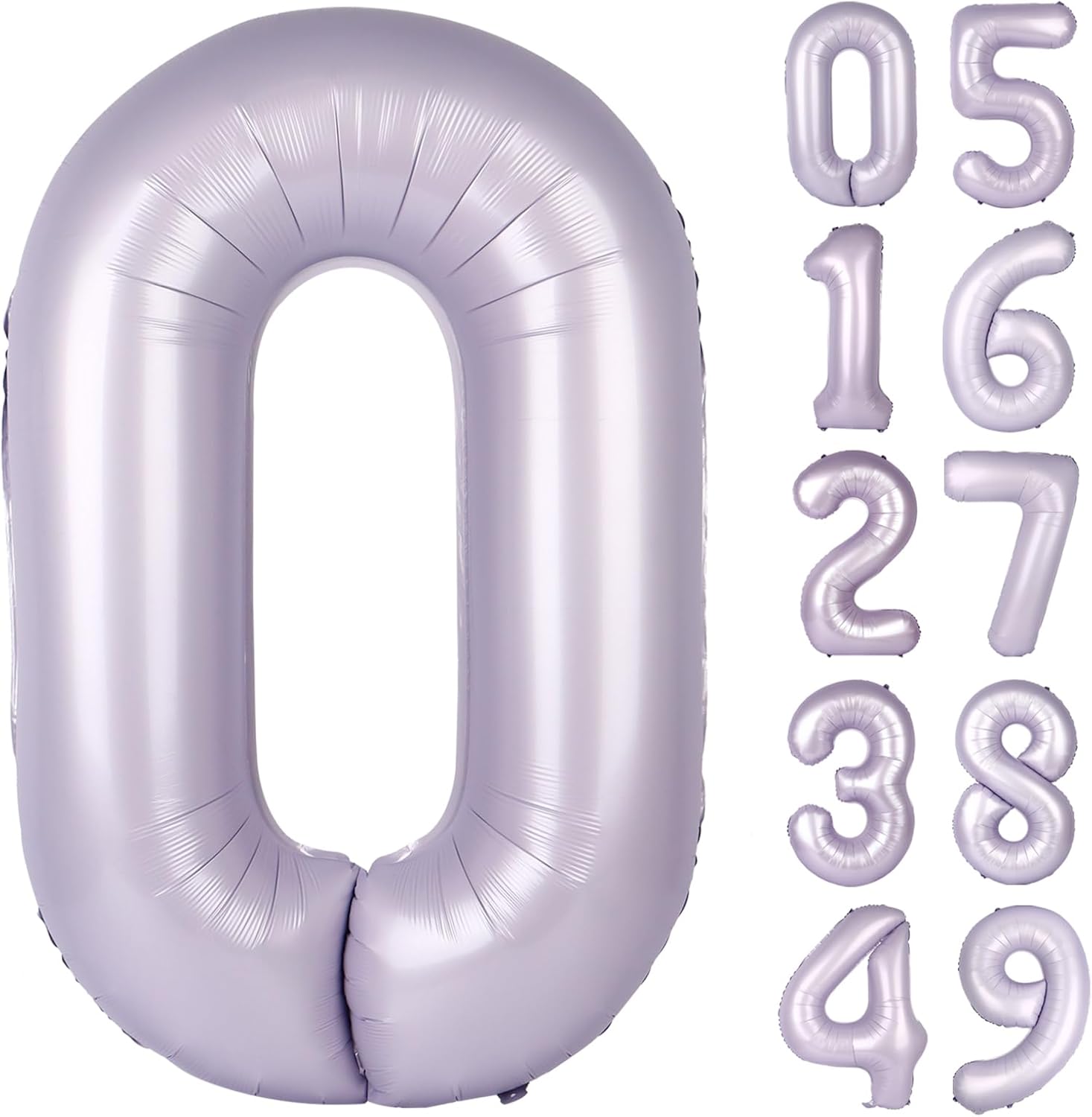 - 1.Make Party Charming with Lavender Number Balloon:You will receive an uninflated 40 inch 0 balloon.Balloons are always the best statement of romance and surprise. Lilac balloons symbolize vitality exoticism, adding glamour to birthday parties. Bright metallic lavender and huge size make 0 foil balloons numbers a highlight of special parties.Choose one or more numbers from 0-9 number balloon,and use 10 20 30 40 50 60 70 80 90 100 balloon number to create a lively and charming party!