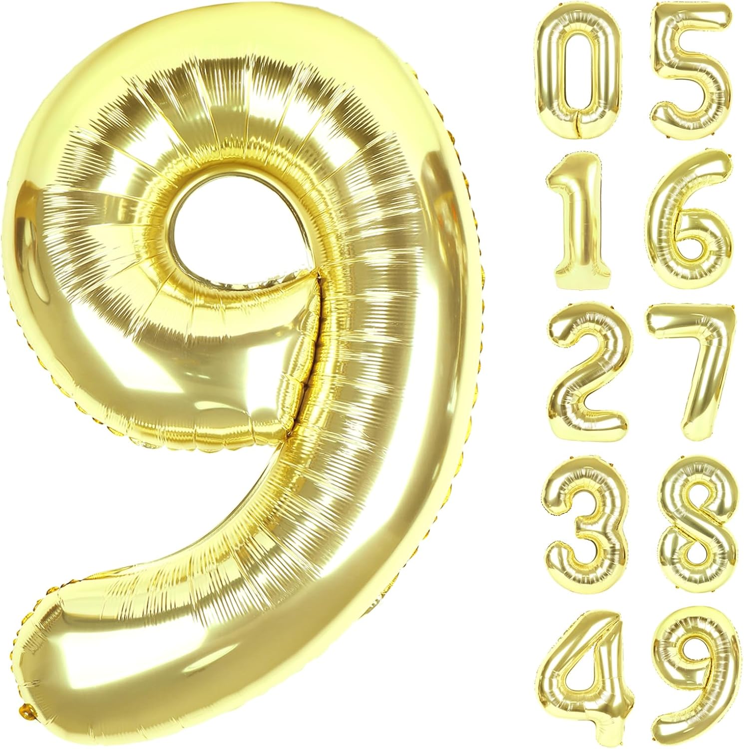 - 1.Make Party Charming with Champagne Gold Number Balloon:You will receive an uninflated 40 inch number 9 balloon.Large number balloons are always the best statement of romance and surprise.Light gold balloons symbolize vitality exoticism,adding glamour to birthday parties.Bright metallic champagne gold and huge size make birthday decorations for men a highlight of special parties.Choose one or more numbers from 0-9 number balloon,and use 9 19 29 69 90 99 balloon numbers to create a lively party!