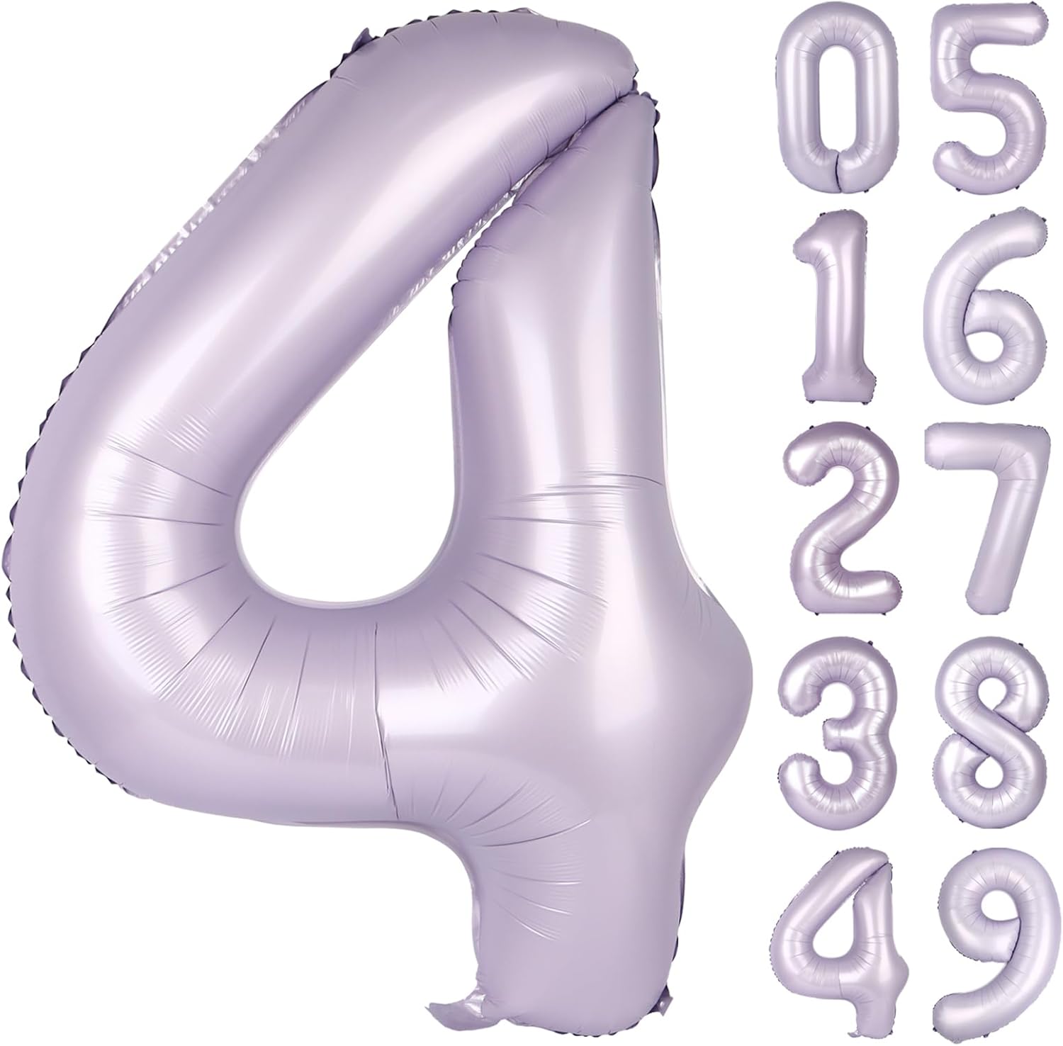 - 1.Make Party Charming with Lilac Number Balloon:You will receive an uninflated 40 inch 4 balloon number.Big number balloons are always the best statement of romance and surprise. Number foil balloons symbolize vitality exoticism,adding glamour to birthday parties.Bright metallic lavender and huge size make 4 lilac balloons a highlight of special parties. Choose one or more numbers from 0-9 number balloon, and use 4 14 24 34 44 54 64 84 94 birthday balloons to create a lively party!
