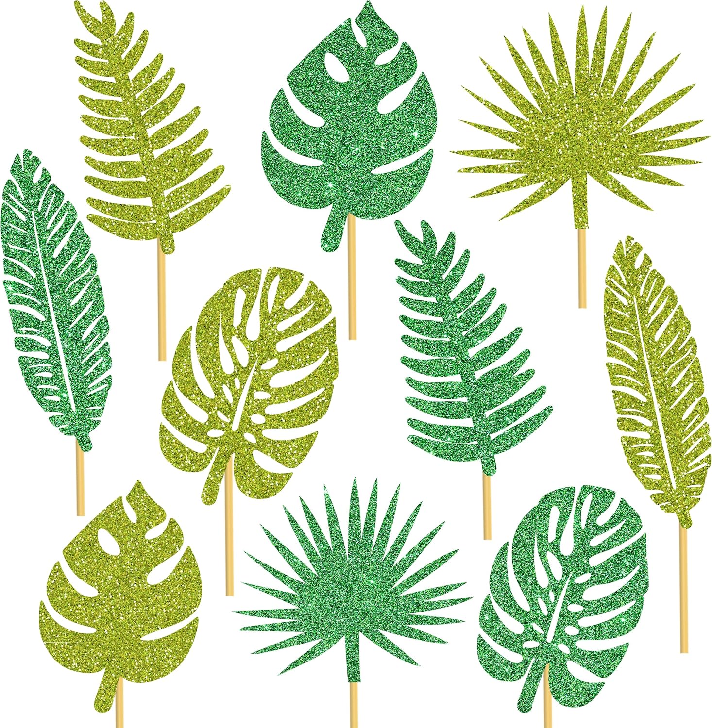- Tropical Leaves Centerpiece Decorations for Table: Set of 20 glittering tropical leaf centerpiece sticks featuring 10 unique designs including Monstera and Palm leaf patterns