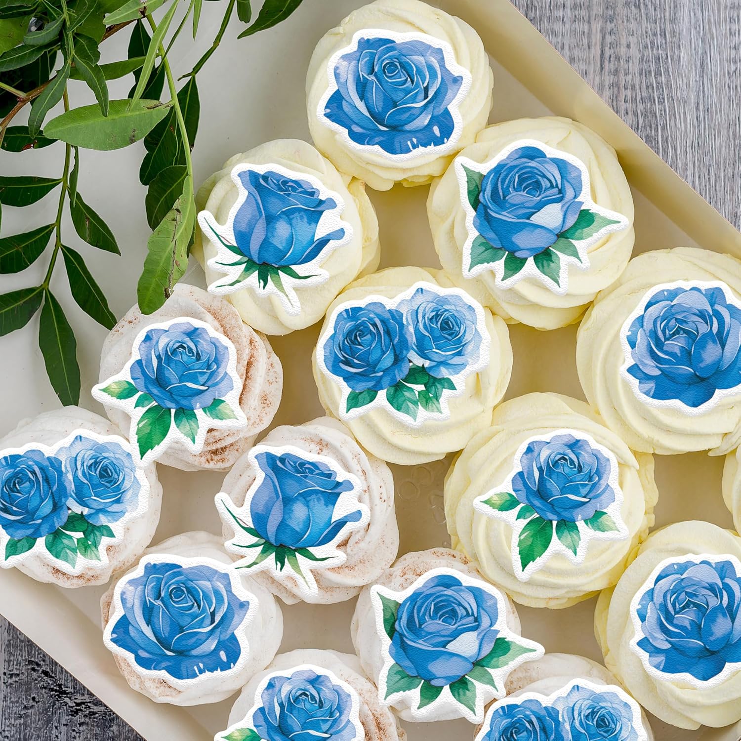 48PCS Edible Rose Flower Cupcake Toppers Wafer Paper Roses Decorations Flower Birthday Party Decorations Rose Cake Toppers for Wedding Engagement Birthday Party Cake Decor Supplies (Blue)