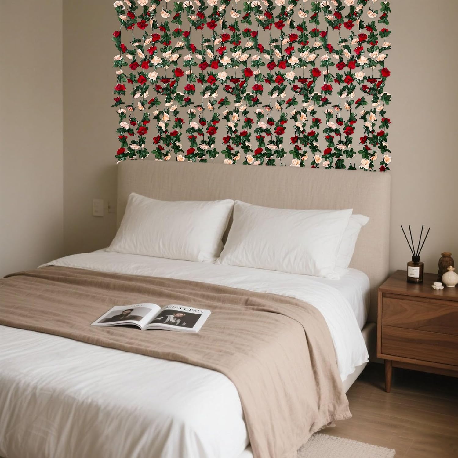 - 【Romantic Decorate】These hanging rose garland flowers are lightweight and bendable, and can create a romantic and fairytale atmosphere for your life. Suitable for many scenes such as wedding arch, birthday party, anniversary, Valentine's Day, Halloween, Christmas. It can be used to decorate dinner tables, gardens, fencing, sheds, swing frames, rattan chairs, air-conditioning pipes, exposed wires, stairs, shops, restaurants, offices, etc.