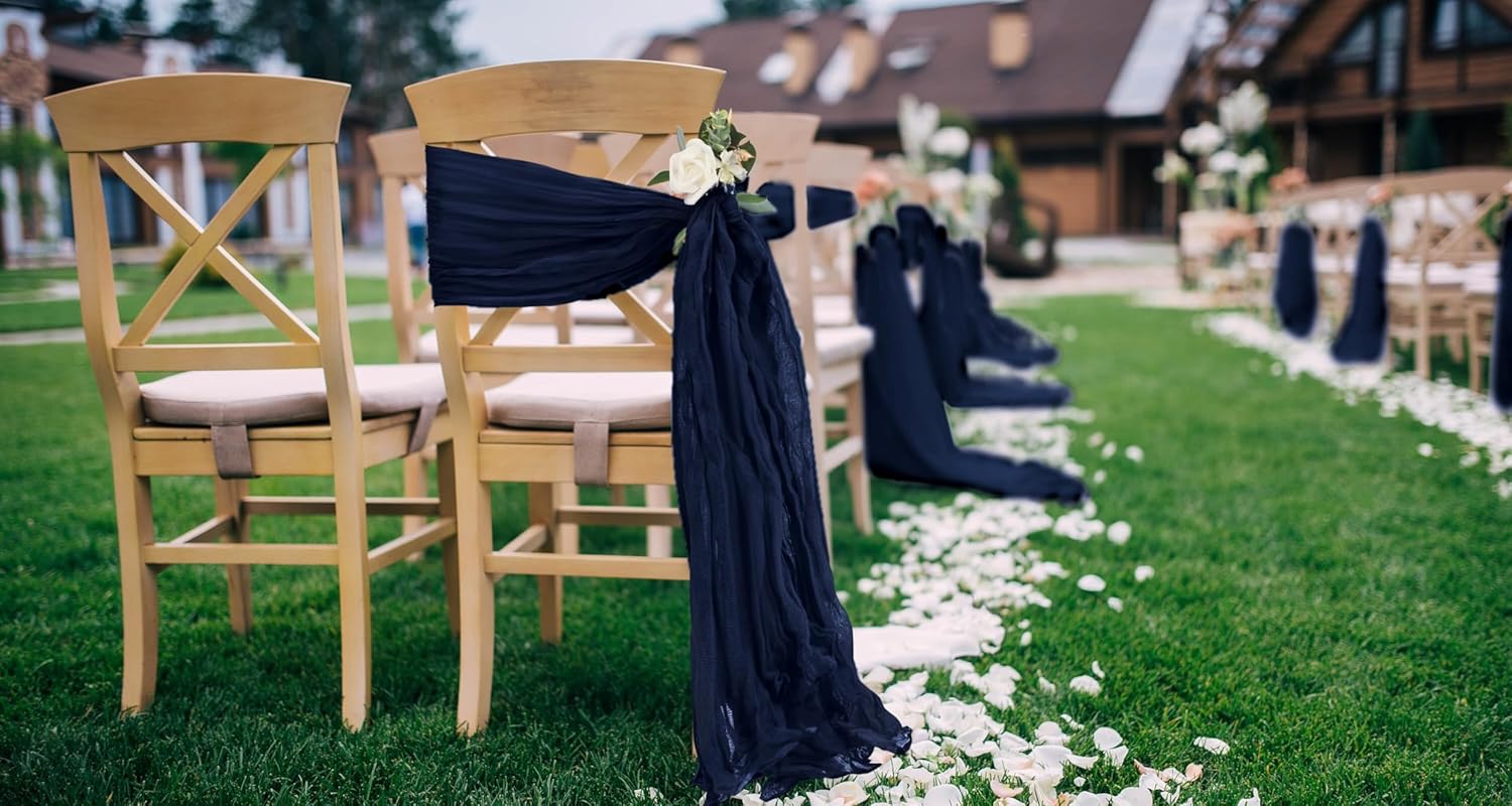 - 【Delicate Craftsmanship】Navy Blue cheesecloth chair sashes adopt unique pleated workmanship, and the overall appearance is simple and elegant, creating an elegant and romantic atmosphere easily. The edges are carefully stitched to keep a perfect flowing condition, will not get broken or loose easily, can serve you for a long time
