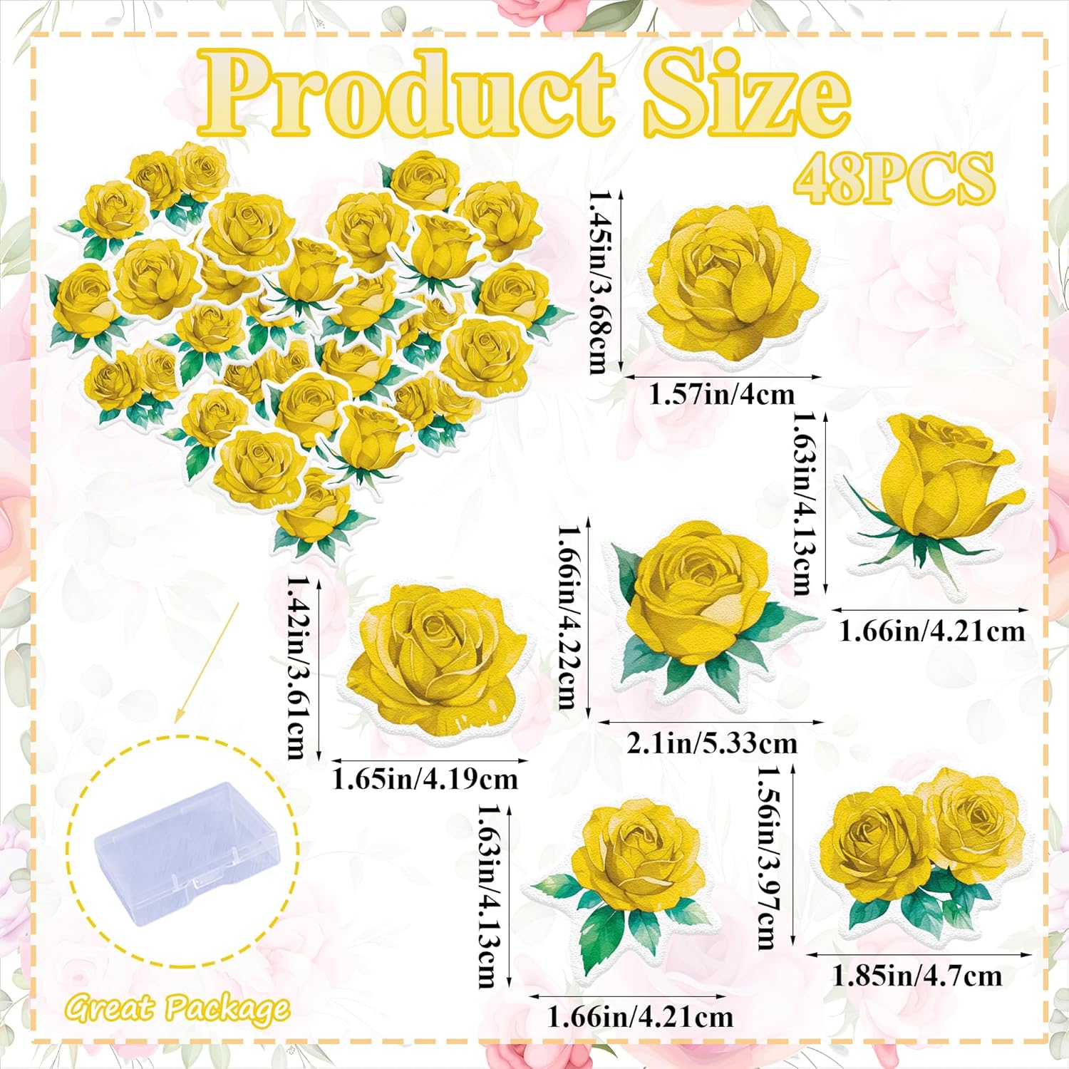 48PCS Edible Rose Flower Cupcake Toppers Wafer Paper Roses Decorations Flower Birthday Party Decorations Rose Cake Toppers for Wedding Engagement Birthday Party Cake Decor Supplies (Yellow)