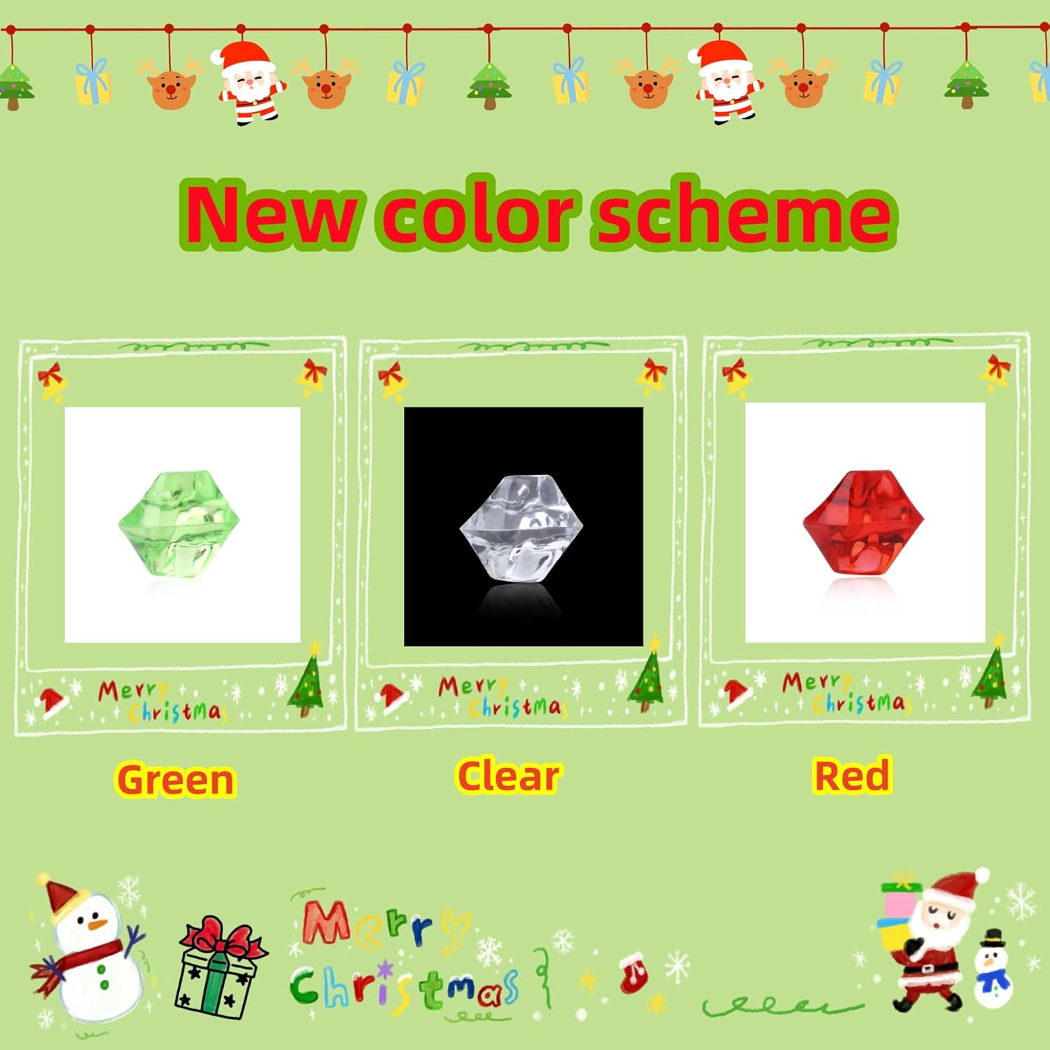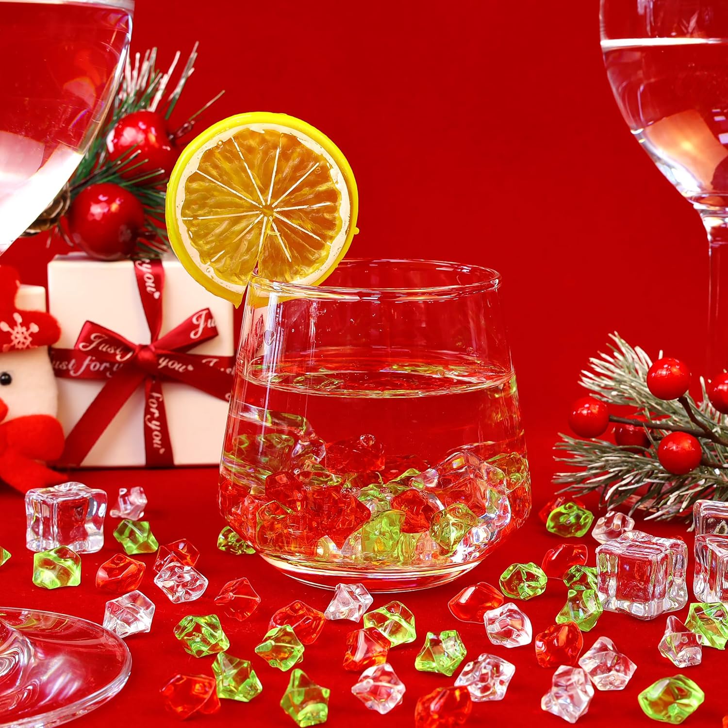 - 【Christmas】The package contains about 500PCS of acrylic ice rocks. Each acrylic ice rock is made of nice quality acrylic, non-toxic and odorless.(This set contains 3 colors: red, emerald green, clear, and the quantity of each color is random. Perfect for Christmas decorations!)