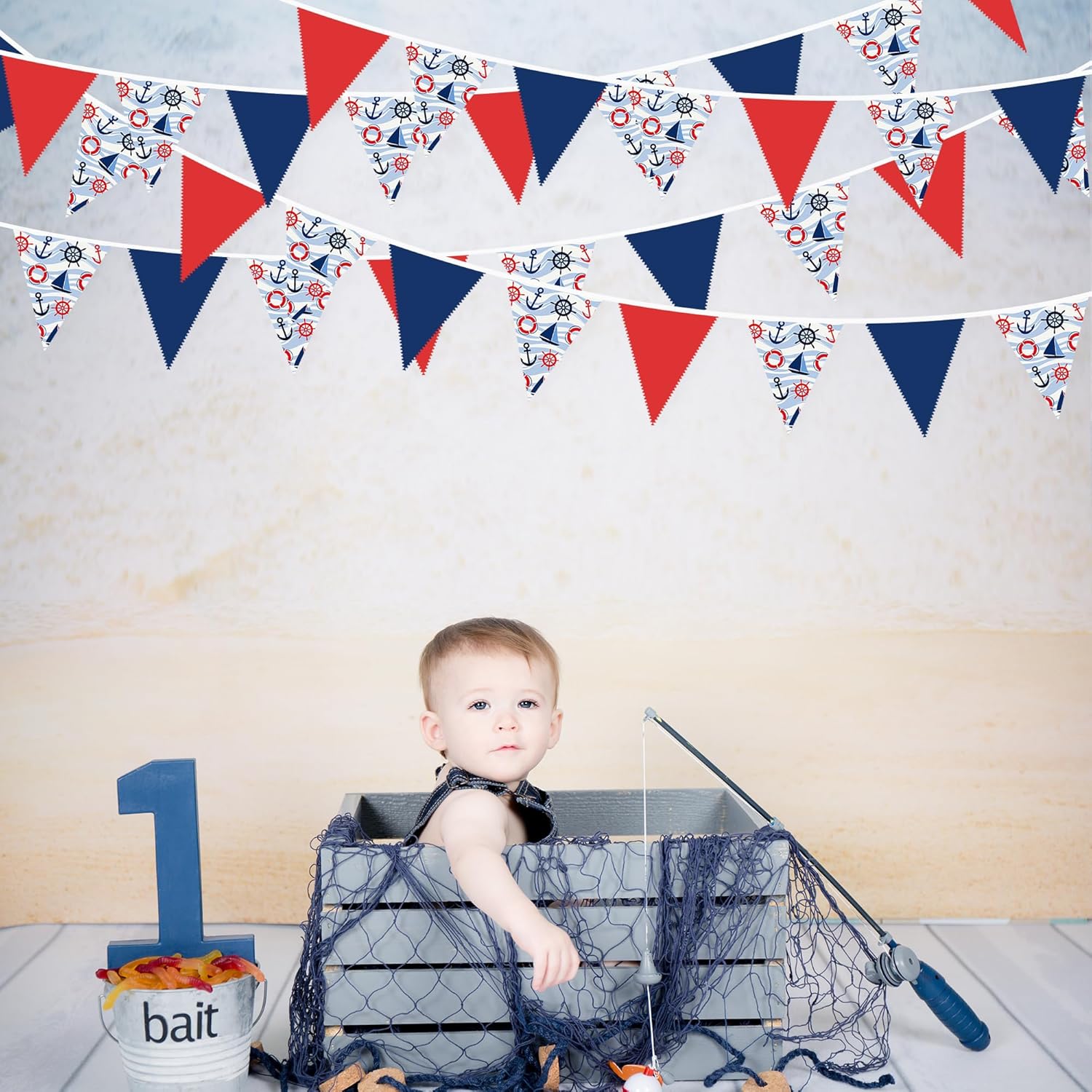32Ft Nautical Party Decorations Red Blue White Nautical Themed Fabric Banner Triangle Pennant Flag Garland Streamers for Kids Boys Ocean Birthday Ahoy Achor Pirate Baby Shower Outdoor Garden Supplies