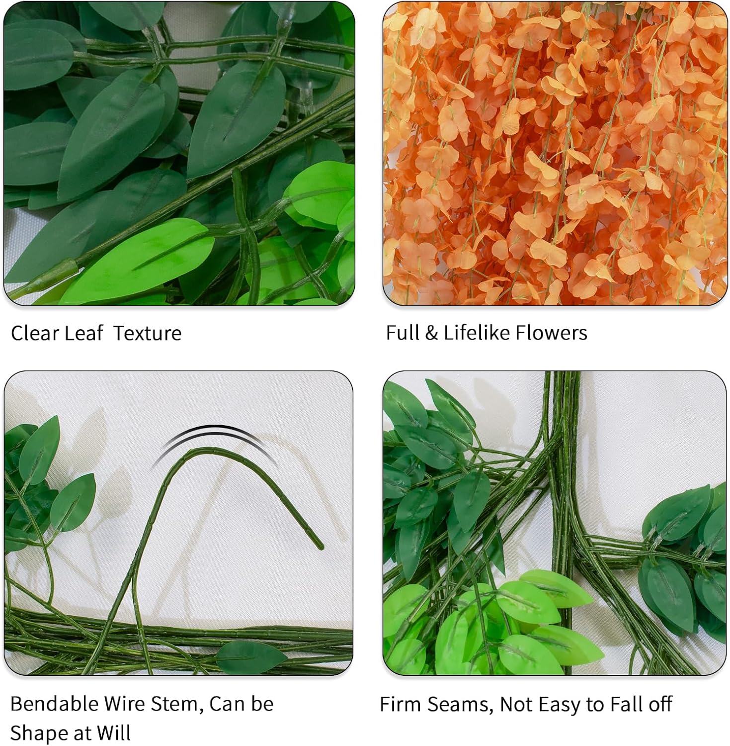 24 Pack Wisteria Hanging Artificial Fall Flowers Fake Flowers Ratta Hanging Garland Silk Flowers String for Home Garden Party Wedding Backdrop Arch Decor (Orange)