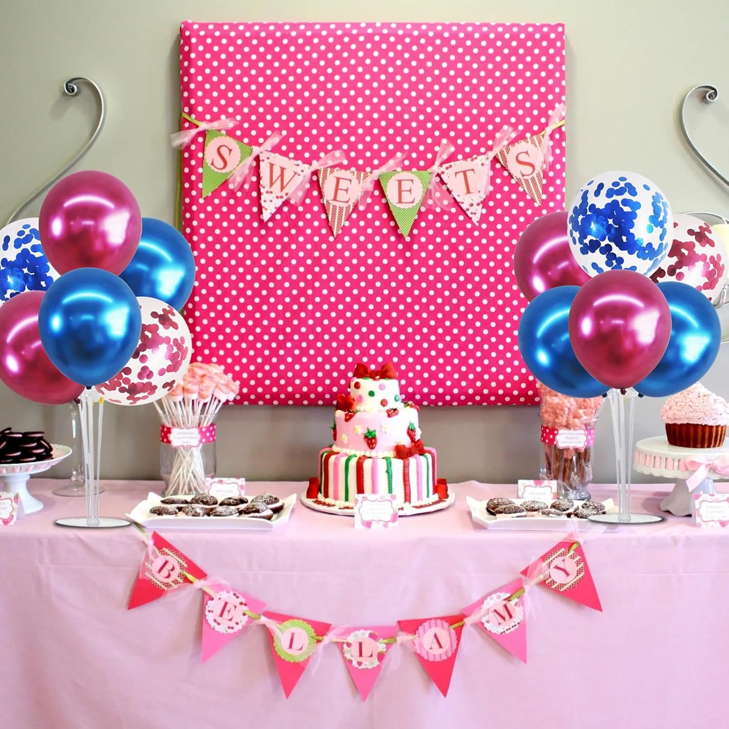 TONIFUL 4 Set Metallic Blue and Rose Red Balloon Stand Centerpiece Table Decorations for Baby Shower Wedding Engagement Bridal Shower Anniversary Mother's Day Birthday Party Decorations