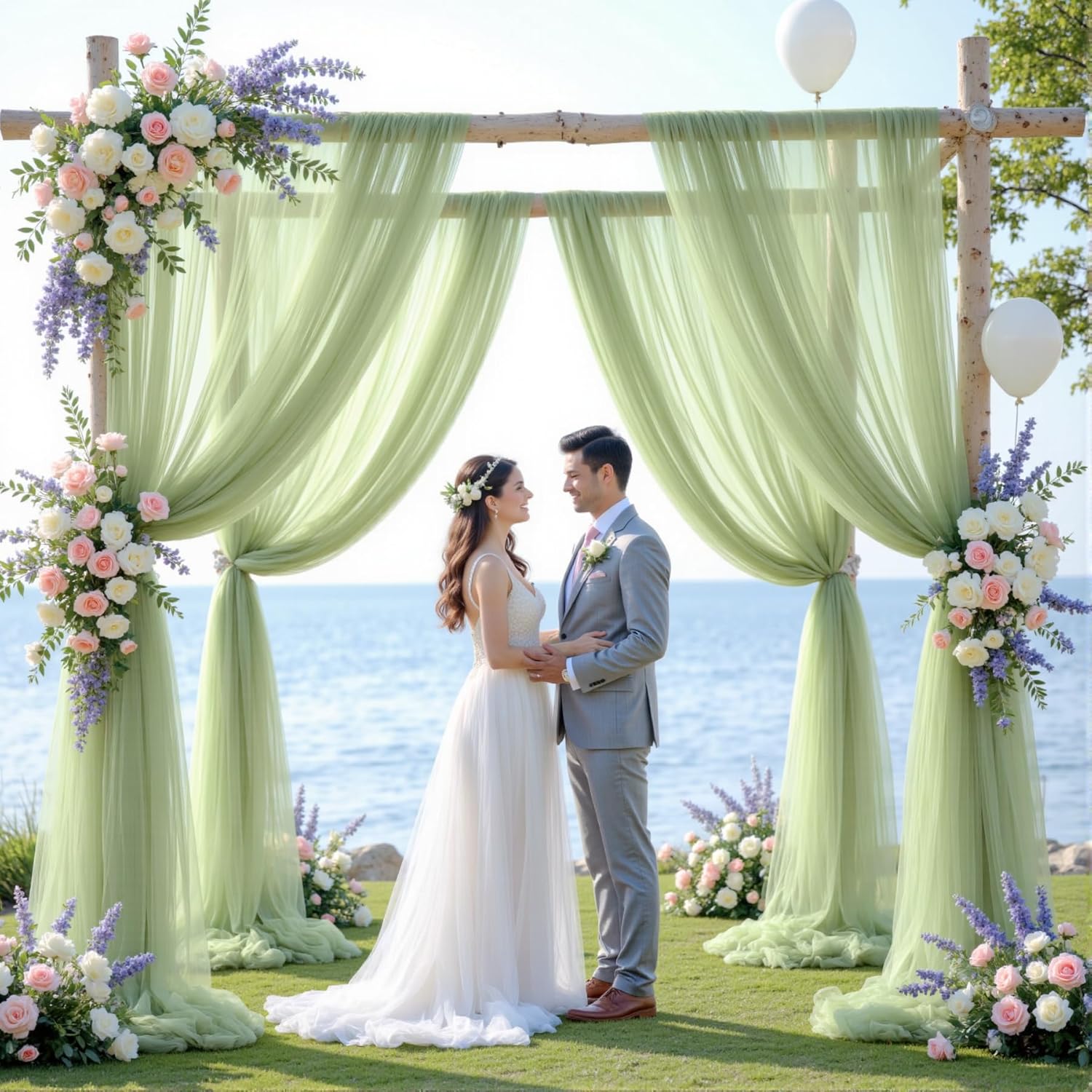 - Best Choice Wedding Arch: Package includes 1 panel sage green wedding arch sheer drapes, each panel is 30 inches wide and 19 ft long. The drape of the fabric is perfect for use in a wedding arbor. These arch fabric add a pretty touch to pillars at a wedding.