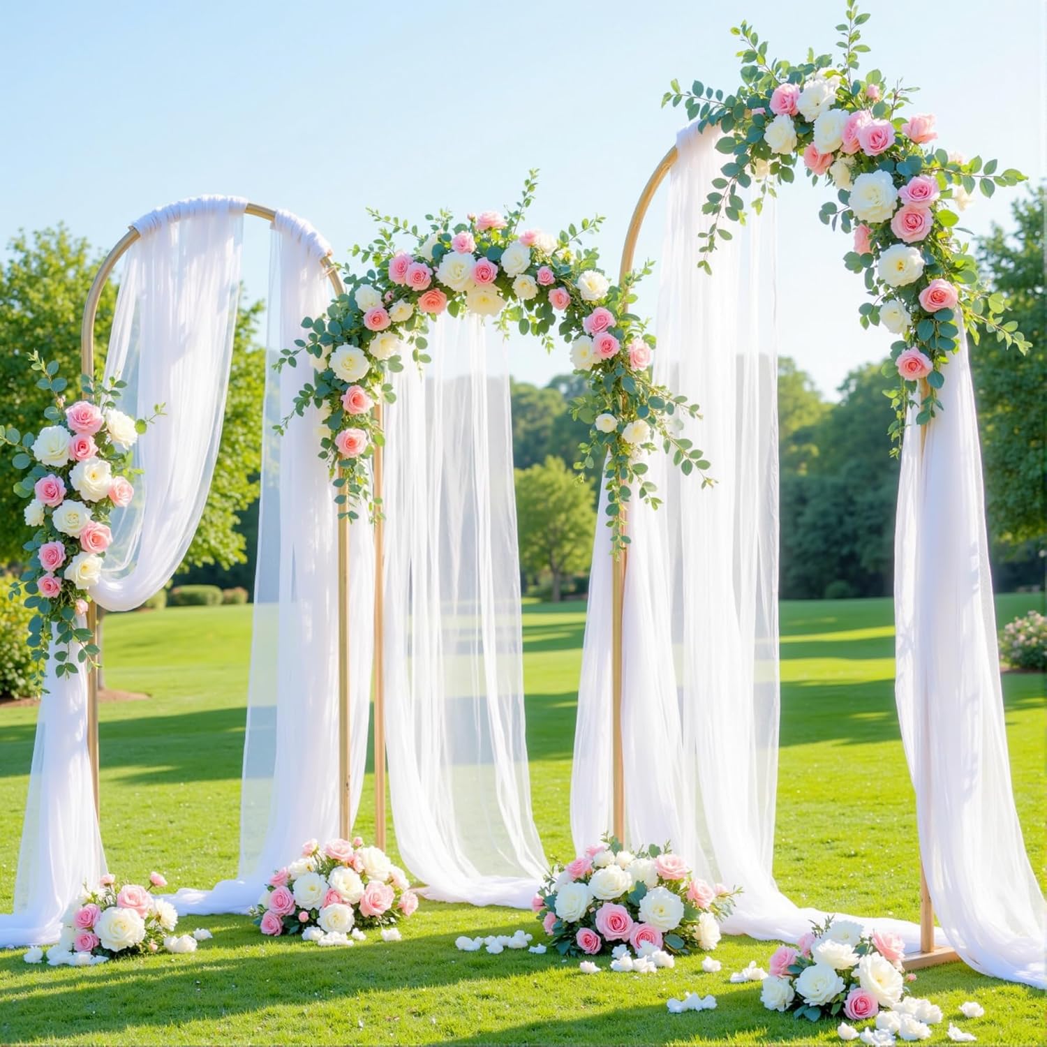 - Wedding Arch Draping Fabric: 100% high-grade polyester tulle, offering unmatched softness and durability. Delicate matte finish with a subtle sheen that catches light elegantly without glare (perfect for photography).Wrinkle-free: Packed on roll with anti-crease lining—unfurls ready-to-use.