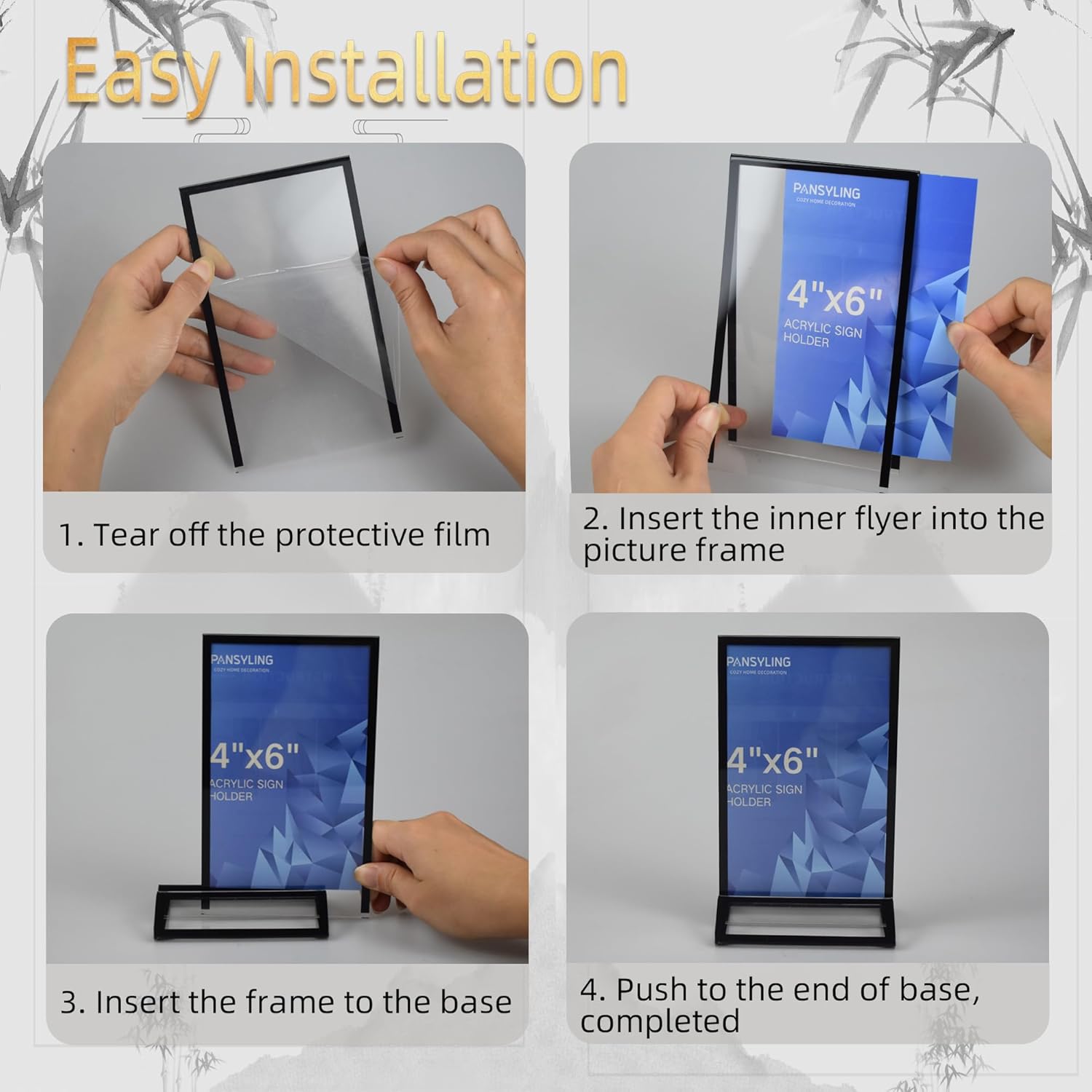 - 【Easy to Use & Reusable Picture Frame】6 Pack of 4 x 6 inch Acrylic display stands. Easy to install without tools. The inner paper are easy to assemble and easy to take down after use. Simply change a new picture for the coming events, such as birthday, Halloween or Christmas parties.