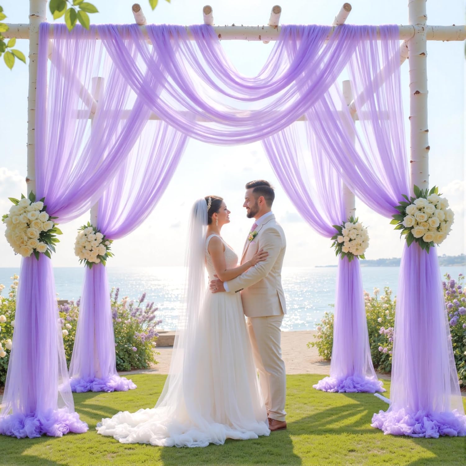 - Best Choice Wedding Arch: Package includes 2 panels purple wedding arch sheer drapes, each panel is 30 inches wide and 19 ft long. The drape of the fabric is perfect for use in a wedding arbor. These arch fabric add a pretty touch to pillars at a wedding.