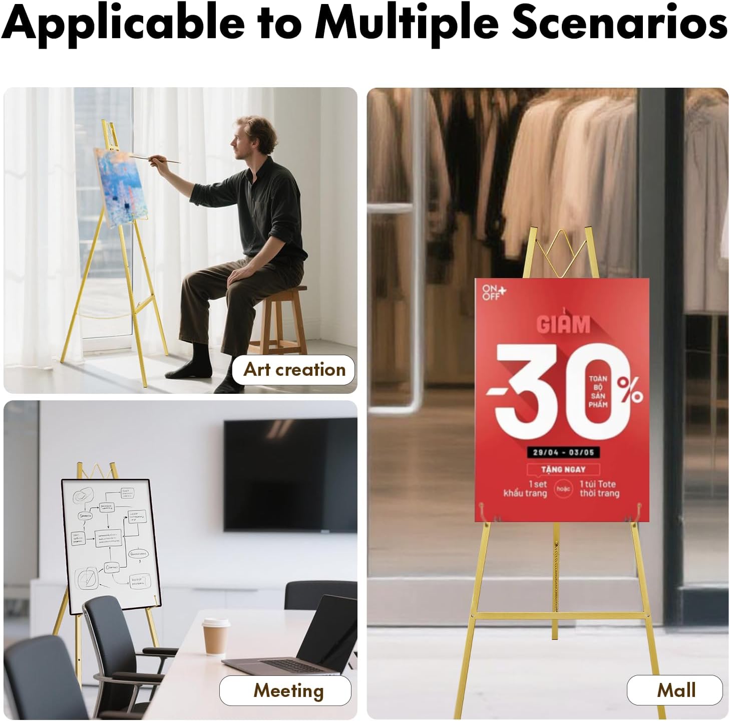 - 【Durable and Stable】Crafted from reinforced metal with discreet anti-slip feet that protect floors while holding firm. The triangular support structure quietly keeps your display steady, even on bustling event days