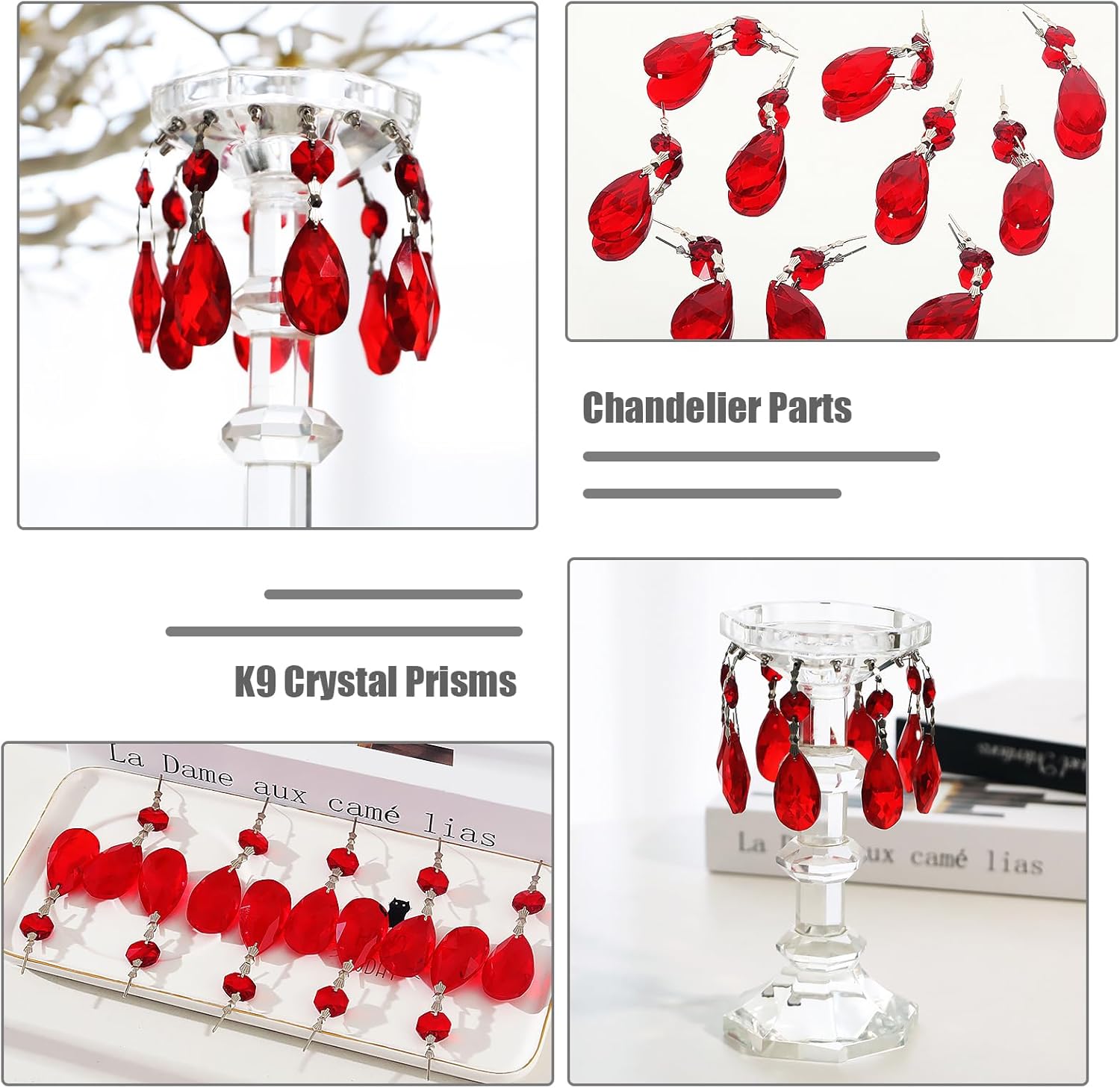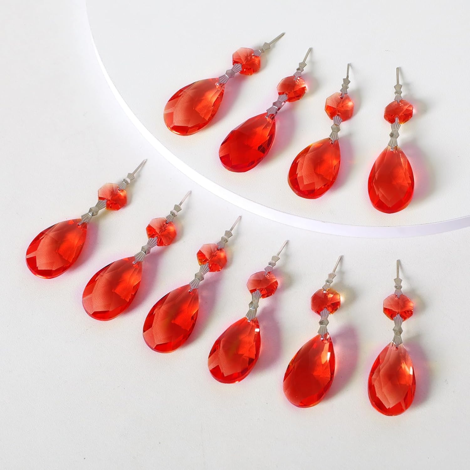 10pcs Crystal Prisms Chandelier Red Ornament Pendants Rainbow Maker 38mm Drop Prism Hanging Prisms for Wedding Party Chrismtmas Decoration DIY Jewelry