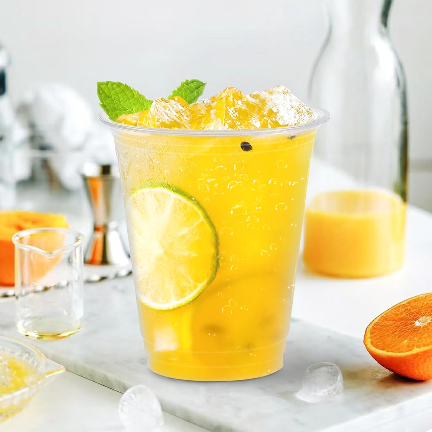 - Perfect for Any Occasion:Our clear disposable cups can hold all types of beverages for different occasions are great tableware wine, juice, colourful sodas, champagne and mixed drinks. PET disposable water cups have excellent transparency to see the color and texture of the drink in the juice cup.