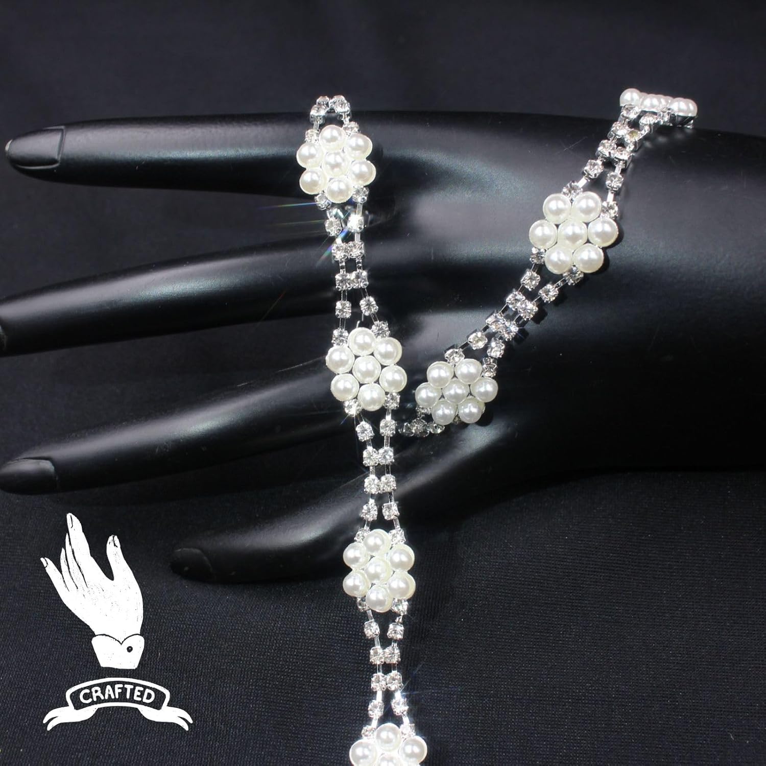 PEARLY JUN 2 Yards Pearl Rhinestone Trim Chain Silver Crystal Fringe Diamond Applique Ribbon String Tassel Strip for Sewing Wedding Dress Crafting Crafts Flower Embellishments