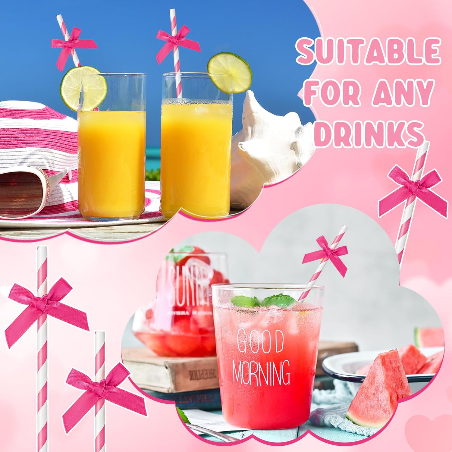 - Rose Red Theme Design: our paper straws have a rose red and white striped design pattern and bow; The style is novel, interesting and elegant, with a strong festive party atmosphere, while making your drinks look more tempting; The bow on the straw has been glued together with glue, so you don't have to waste extra time making it, which can save you time and energy