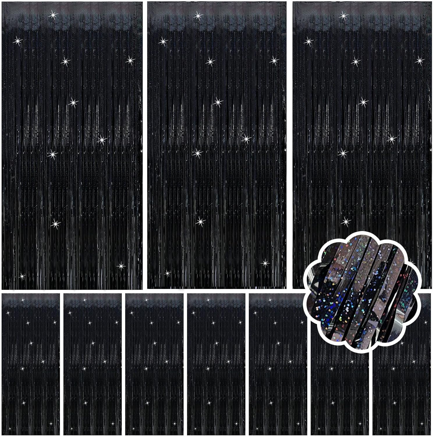 10 Pack Black Streamers Backdrop Tinsel Foil Fringe Curtains Party Decorations Birthday Wednesday Graduation Wizard Party Decorations for Men