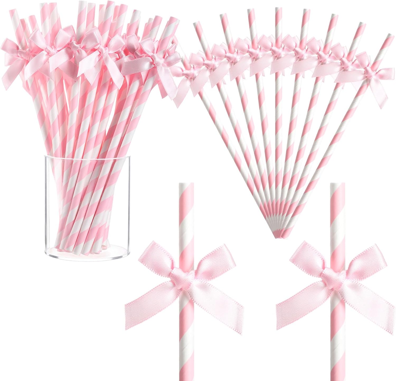 - Pink Theme Design: our paper straws have a pink and white striped design pattern and bow; The style is novel, interesting and elegant, with a strong festive party atmosphere, while making your drinks look more tempting; The bow on the straw has been glued together with glue, so you don't have to waste extra time making it, which can save you time and energy