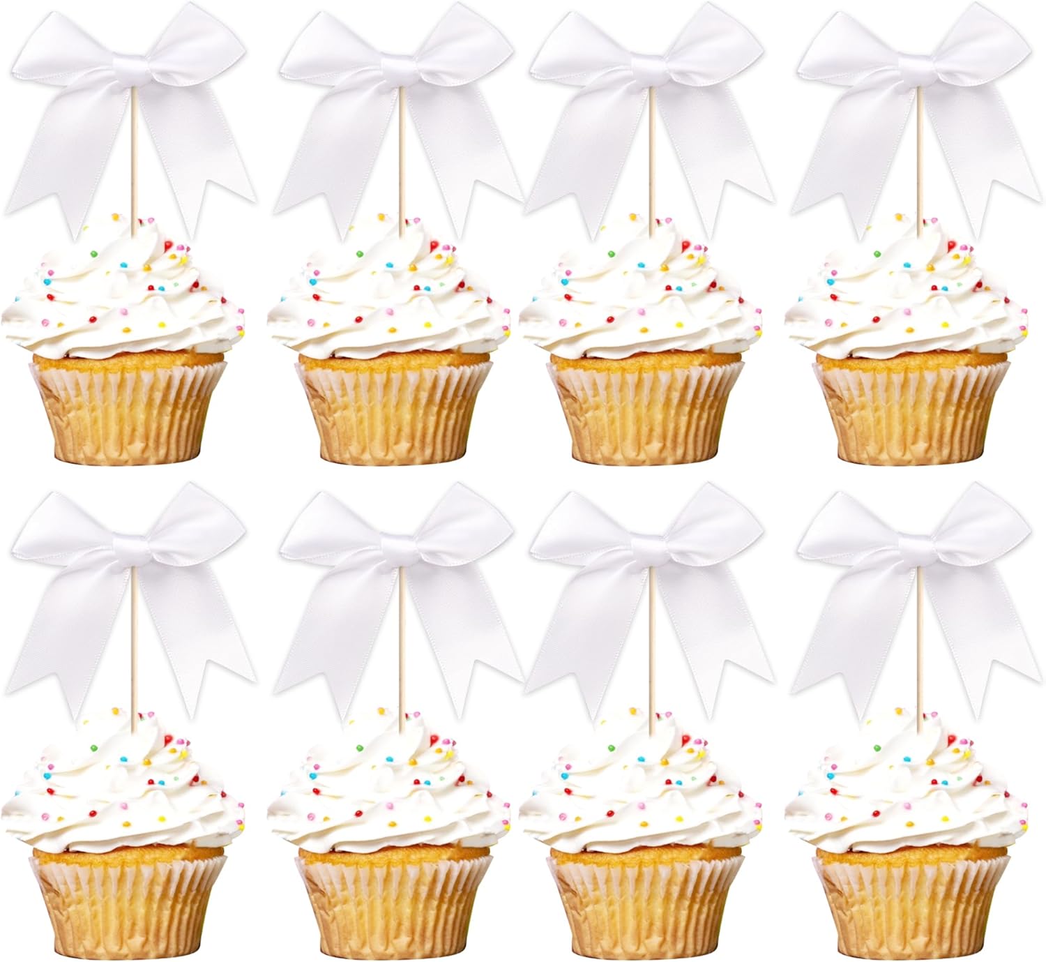 - No Assembled Required ! These bow cupcake toppers are assembled in advance,so you don't need to DIY it by yourself,which can save you time and effort during the process of party preparation; You can insert them into your cake or cupcakes directly.