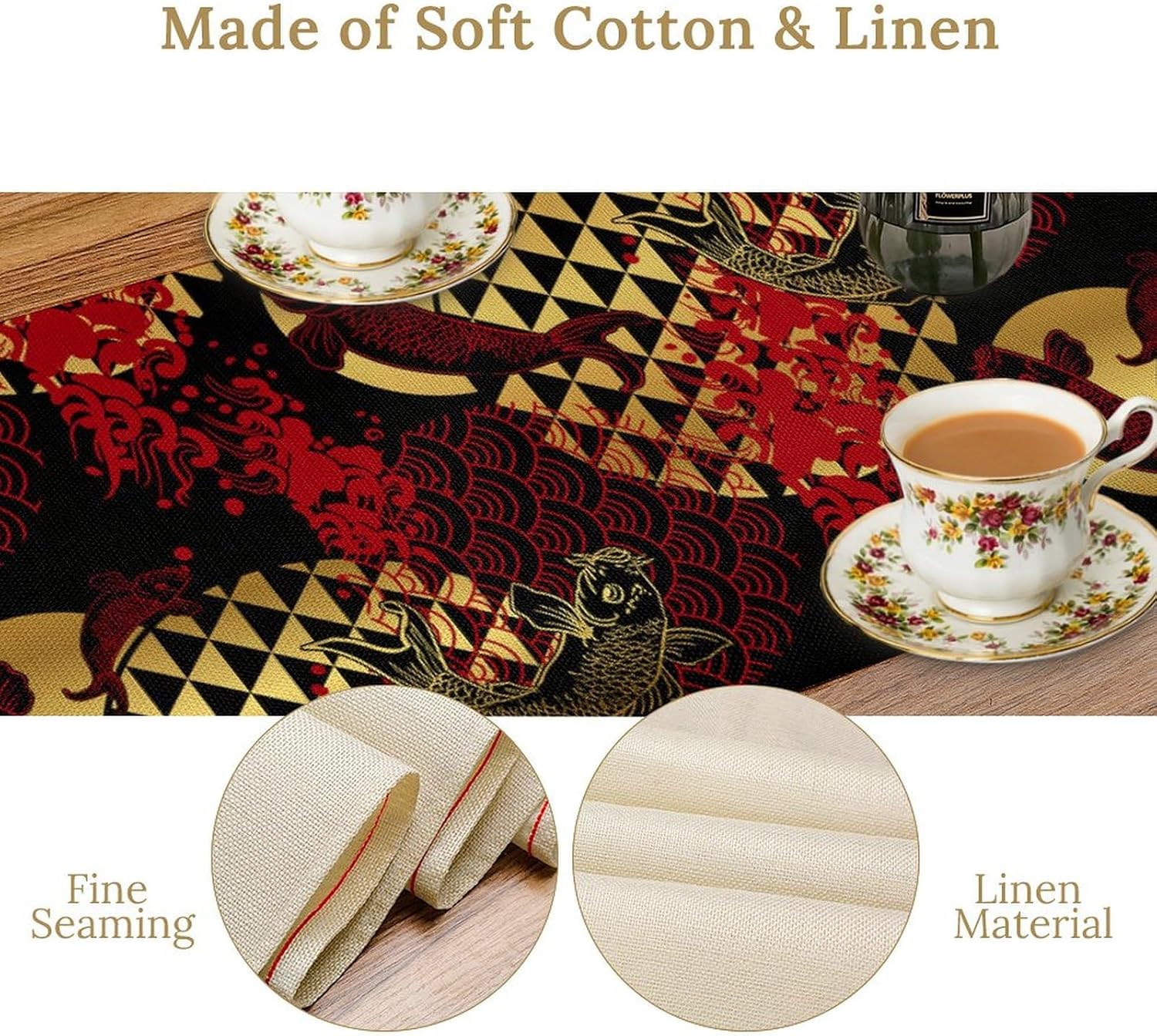 Japanese Table Runner Oriental Tradition Kio Fish Red Art Printed Burlap Runner Home Kitchen Dining Table Living Room Decor Fabric 1 Panel W13xL60in