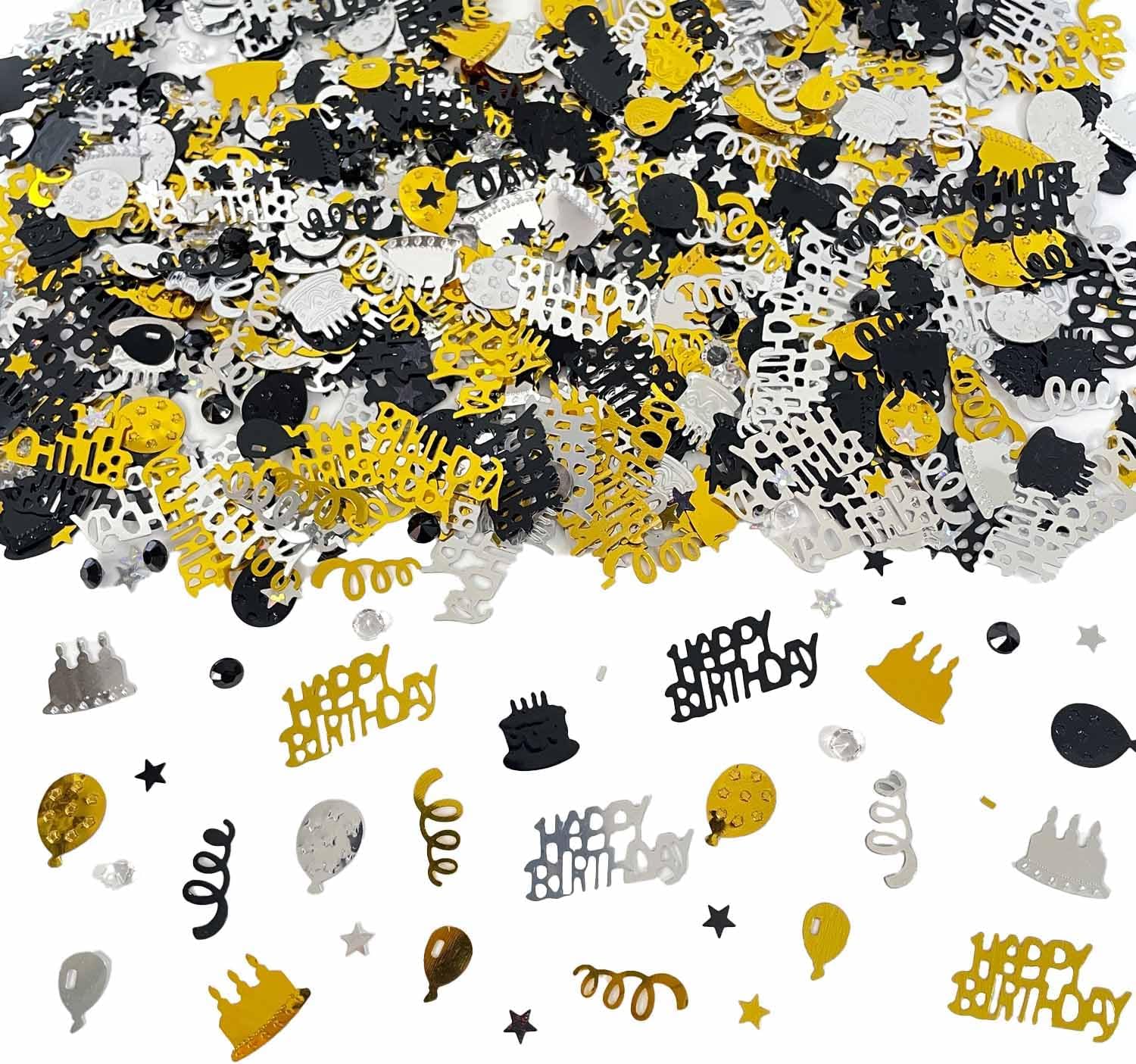 Black Gold Happy Birthday Confetti, Birthday Decorations Confetti Metallic Foil Table Scatter Decorations for Birthday Party, Baby Shower Decor for Boys Men, DIY Arts and Crafting