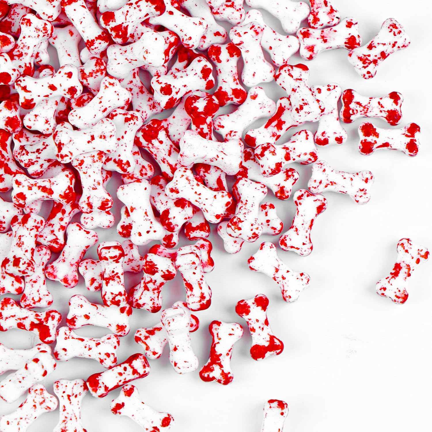 - Edible Bloody Dog Bones Sprinkles: Unleash Halloween magic! These candy bloody dog bones sprinkles are the perfect finishing touch for your ghoulishly good treats. Scatter Halloween sprinkles to create a festive, fun-filled vibe. They're the essential detail for making your spooky sweets unforgettable and frightfully delightful.
