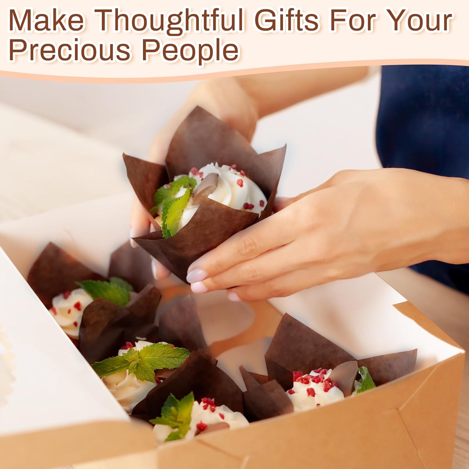 - Quality Greaseproof Paper: crafted with quality greaseproof paper, these tulip muffin liners offer grease resistance; Feel the difference in your baking experience as they can withstand high heat temperatures, avoid easy deformation or fading, and can be stored over a long period