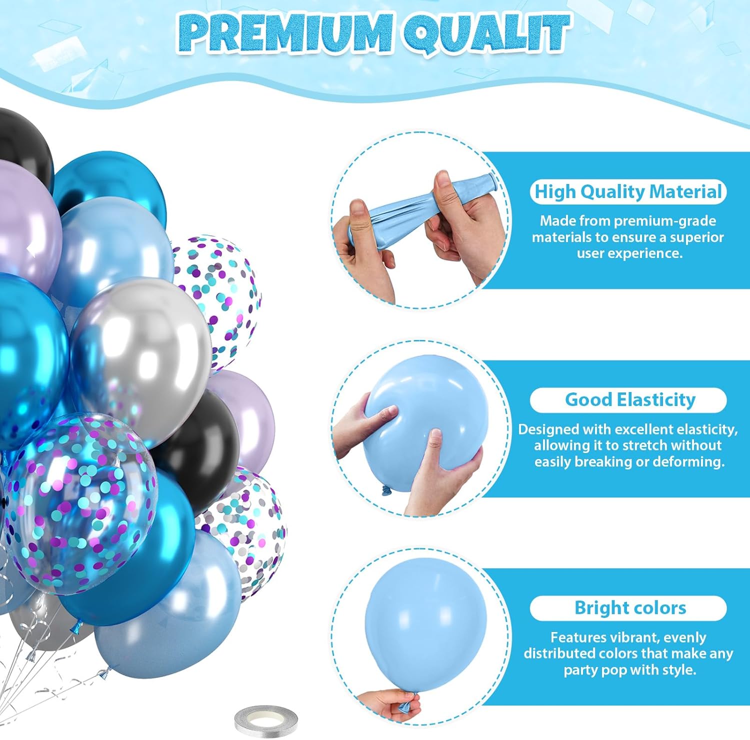 Blue Black Purple Balloons, 60pcs Outer Space Balloons, Metallic Preal Blue Black Silver Balloon Teal Purple Confetti Balloon For Birthday Baby Shower Space Theme Party Wedding Bachelorette Decoration