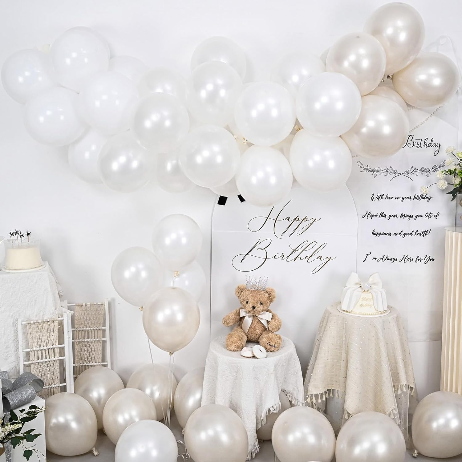 - Ideal for Any Occasion: This versatile balloon set is great for anniversary, birthdays party and bachelorette party decorations. The elegant color scheme of double stuffed pearl and sand balloons, double stuffed pearl and white balloons, white balloons and thick pearl balloons works for both modern and classic themes, perfect for indoor or outdoor parties