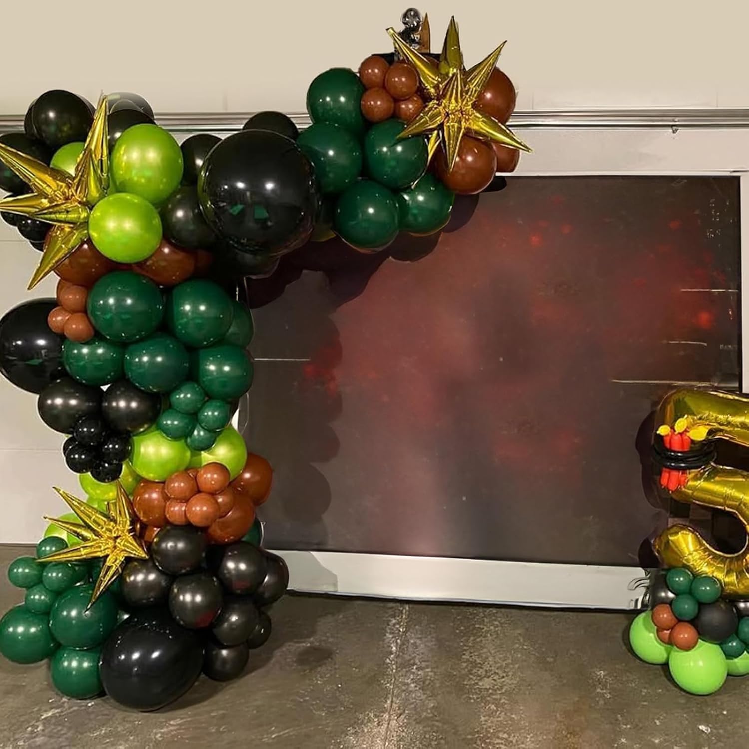 - Video Theme Balloons Set: This Retro Green Black Balloons kit includes 60 high-quality 12-inch balloons in six colors: matte black latex balloons, matte green latex balloons, dark emerald green latex balloons, retro brown latex balloons, lemon green latex balloons, and black green confetti latex balloons, plus a ribbon. It’s perfect for decorating teen jungle forest theme parties, boy gaming tournamentbirthdays, weddings, and baby shower parties, adding a vibrant touch to any celebration