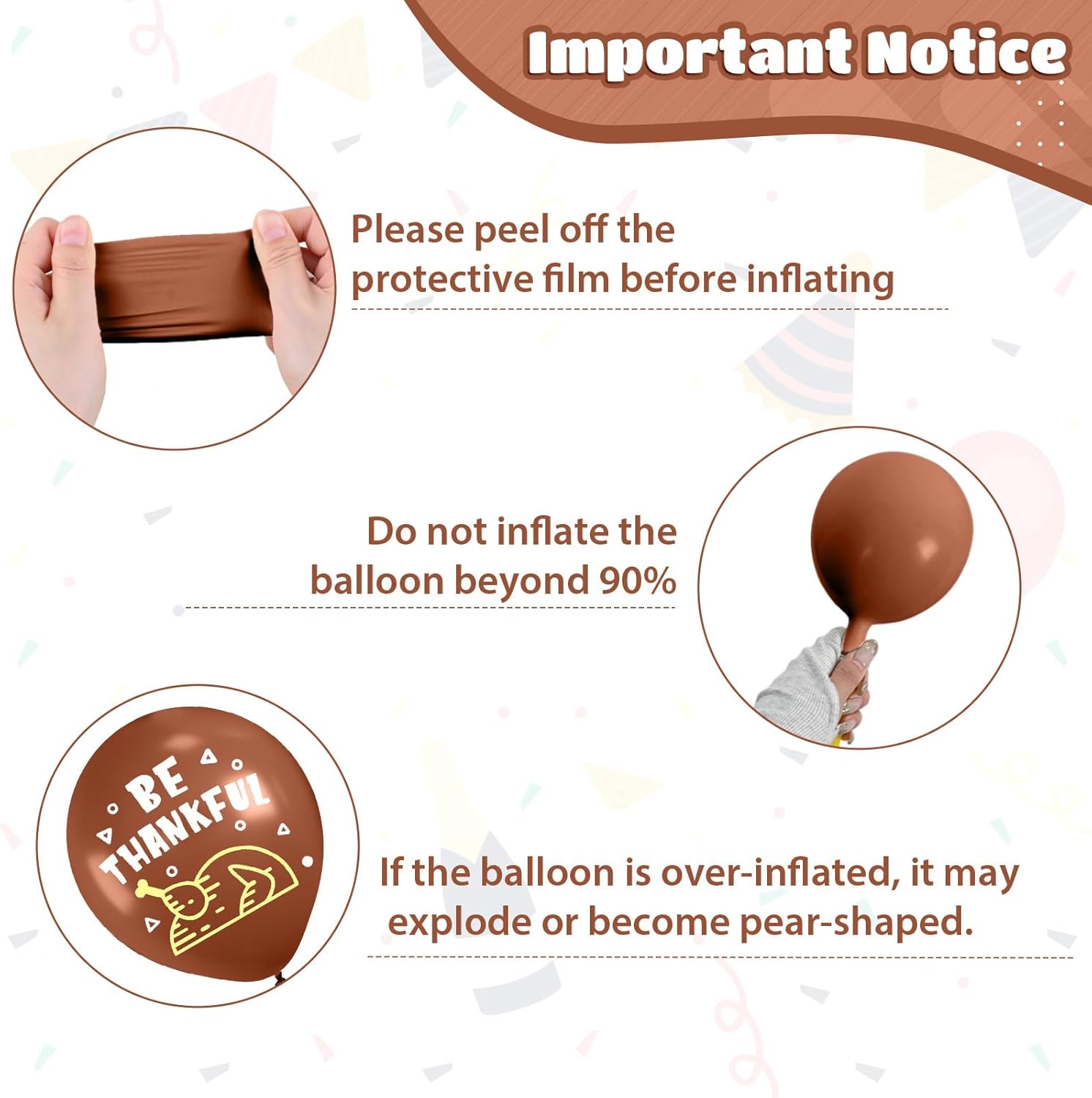 - 【Easy to Assemble】Our brown and yellow balloons set can be easily inflated with air or helium. Use a pump for quick setup. Secure them with the provided ribbons for a polished look. You can DIY any style you desire, sticking thanks giving balloons to doors, walls, ceilings, and anywhere else you wish to decorate.