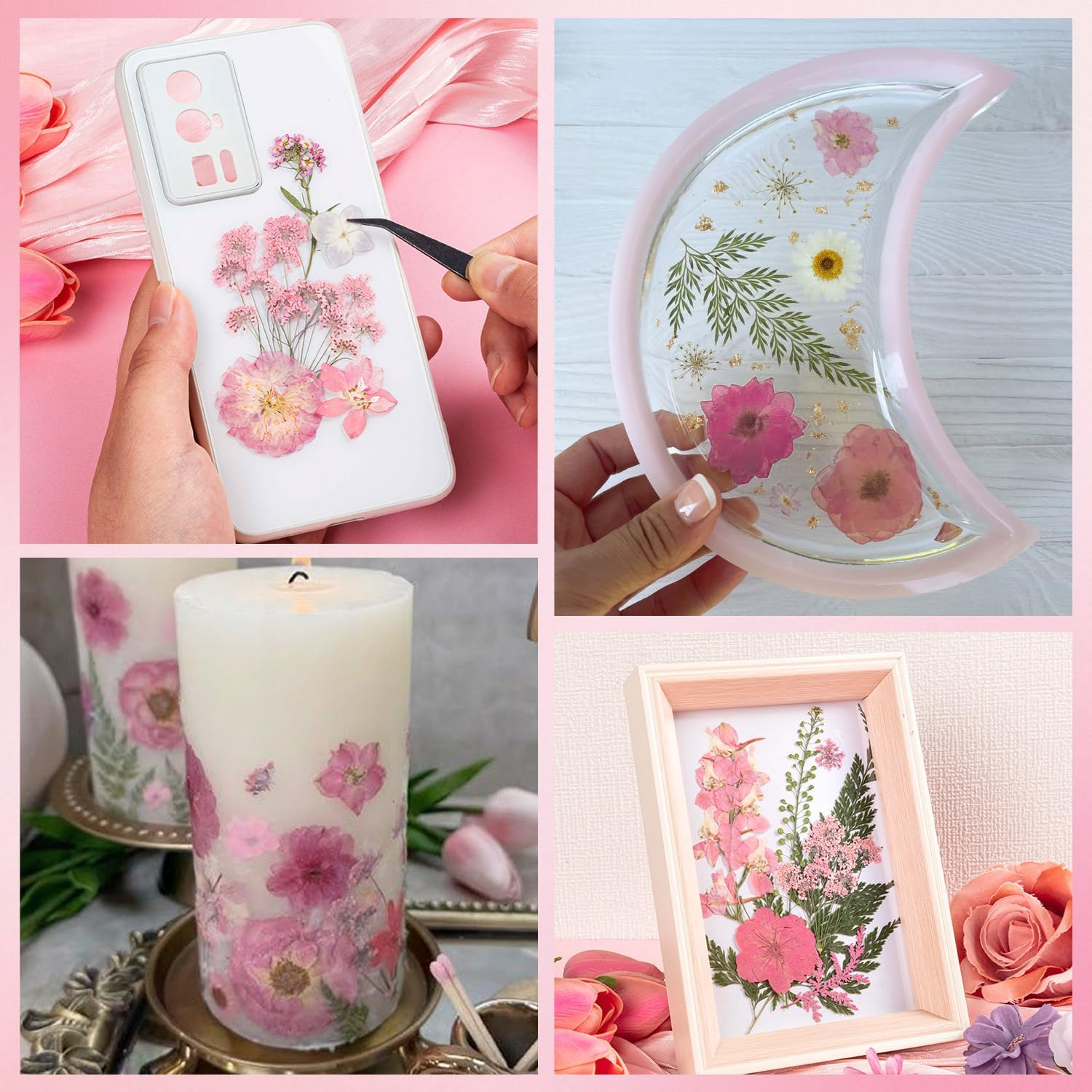 - DIY Crafts: Our pink dried flowers and leaves are mainly light light pink, suitable for valentines craft making. You can make bookmarks, greeting cards, picture frame decorations, candle making, mobile phone cases, scrapbooks with family on holiday