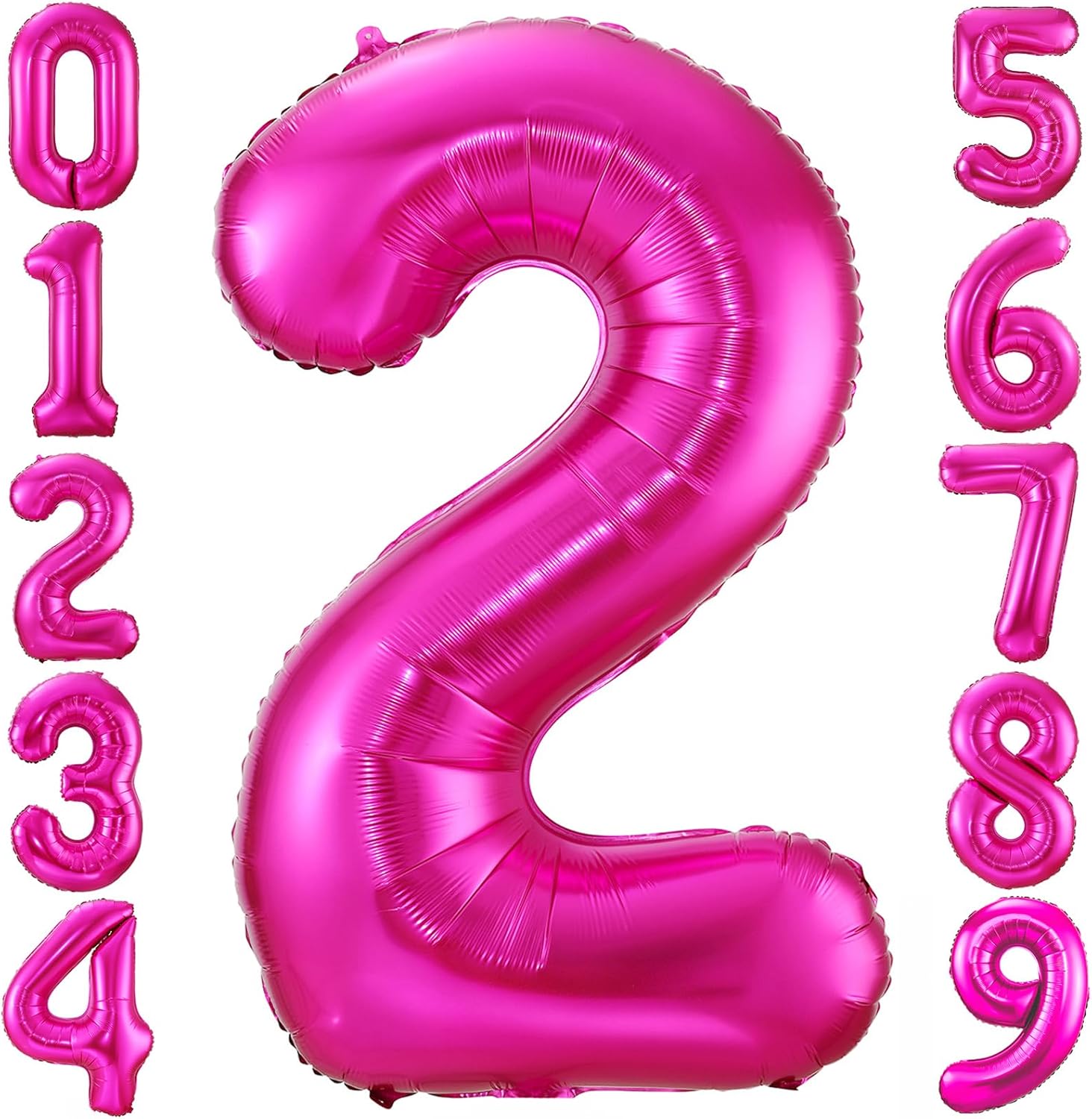 Hot Pink 2 Balloon,40 Inch Number 2 Balloon,2 Birthday Balloon Decorations, Foil Mylar Helium 2 Balloon Number for Birthday Party Decorations