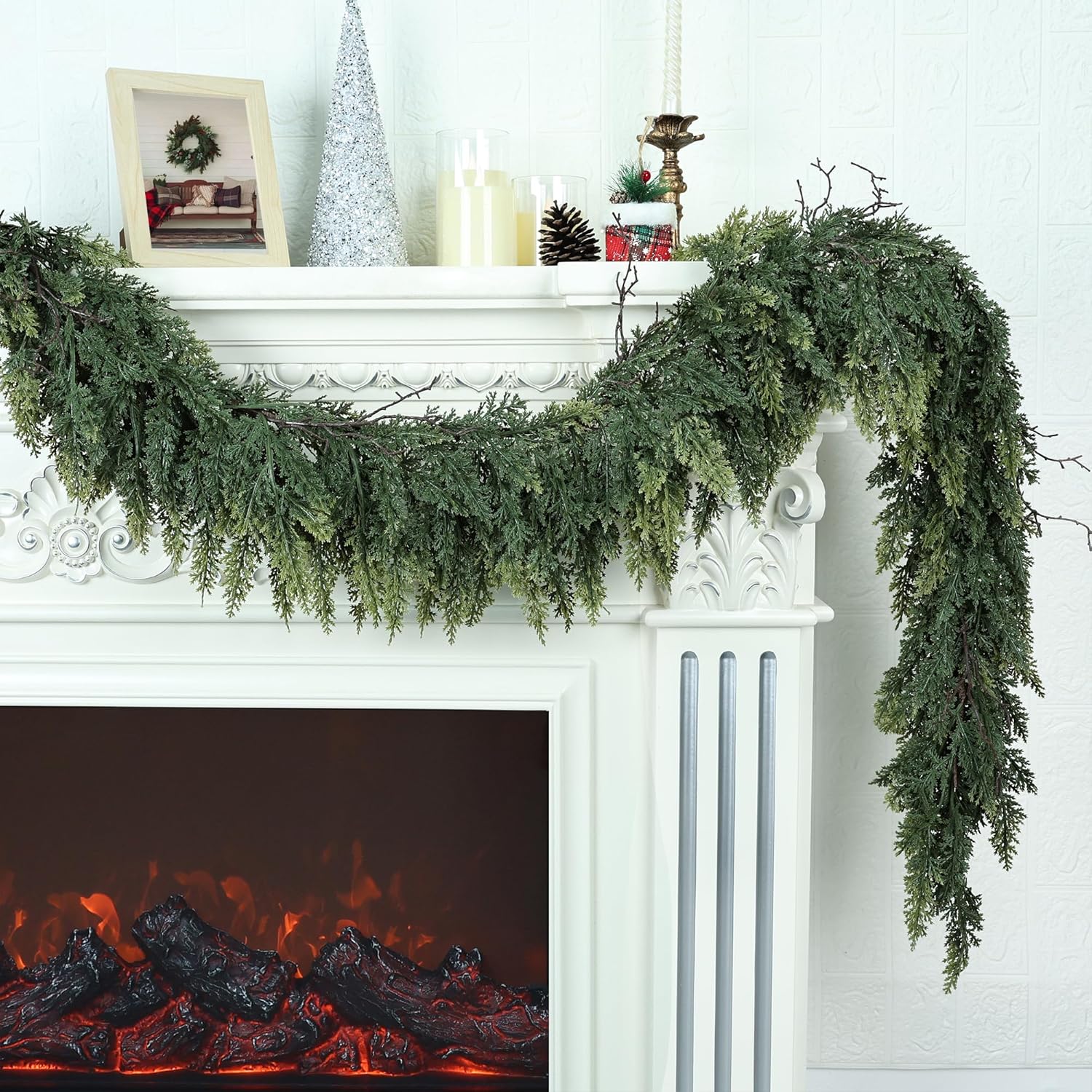 - Lifelike & Elegant Look:Designed with premium materials,this artificial Christmas garland captures the authentic charm of real Cedar. The soft, flexible needles cascade gracefully, offering a rich and elegant appearance.Styled as a lush cedar garland,Its true-to-nature feel helps bring an inviting touch of the outdoors into your home—perfect for setting a cheerful, festive vibe indoors