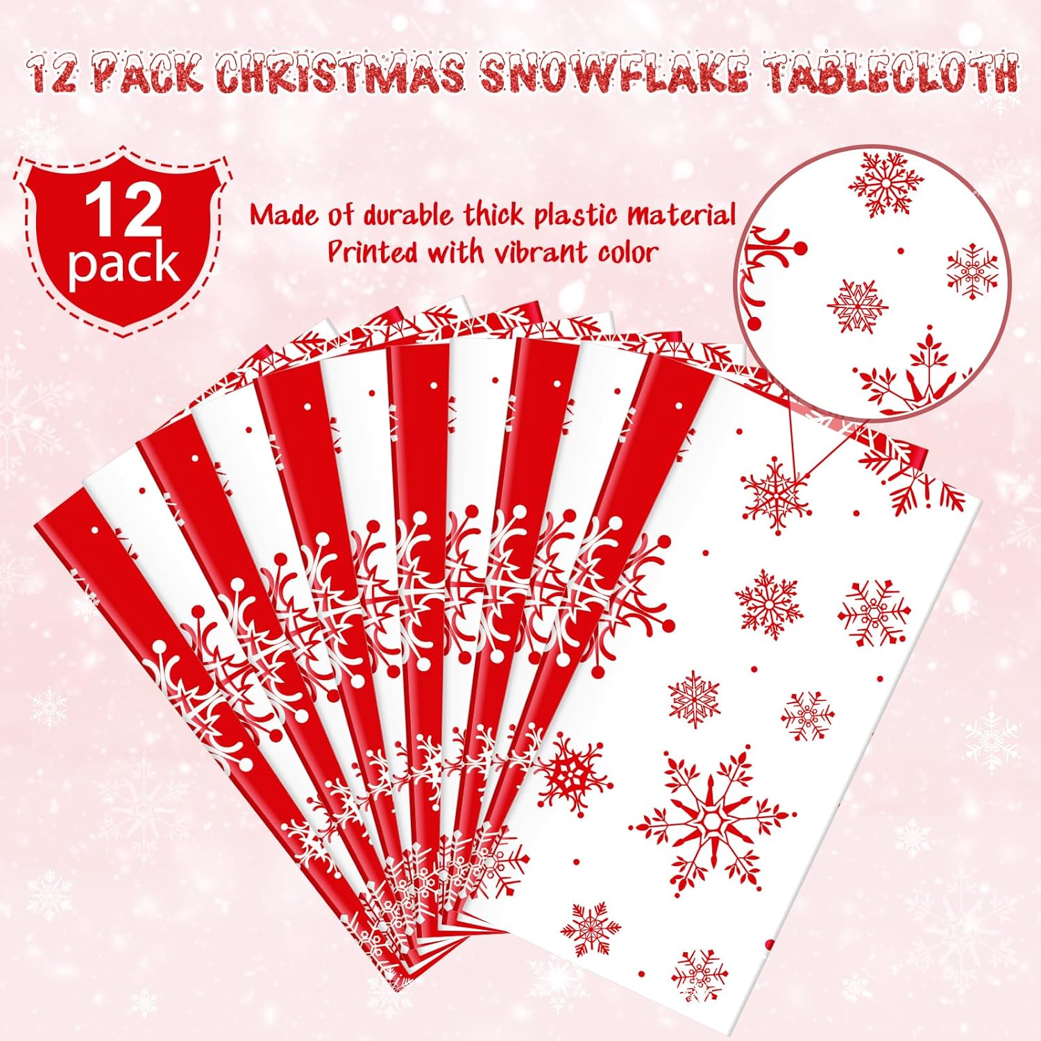 12 Pieces Christmas Snowflake Plastic Party Tablecloth Decorations,54x108 inch Disposable White Red Rectangle Snowflake Xmas Table Cover Backdrop for Winter Christmas Holiday New Year Party Supplies