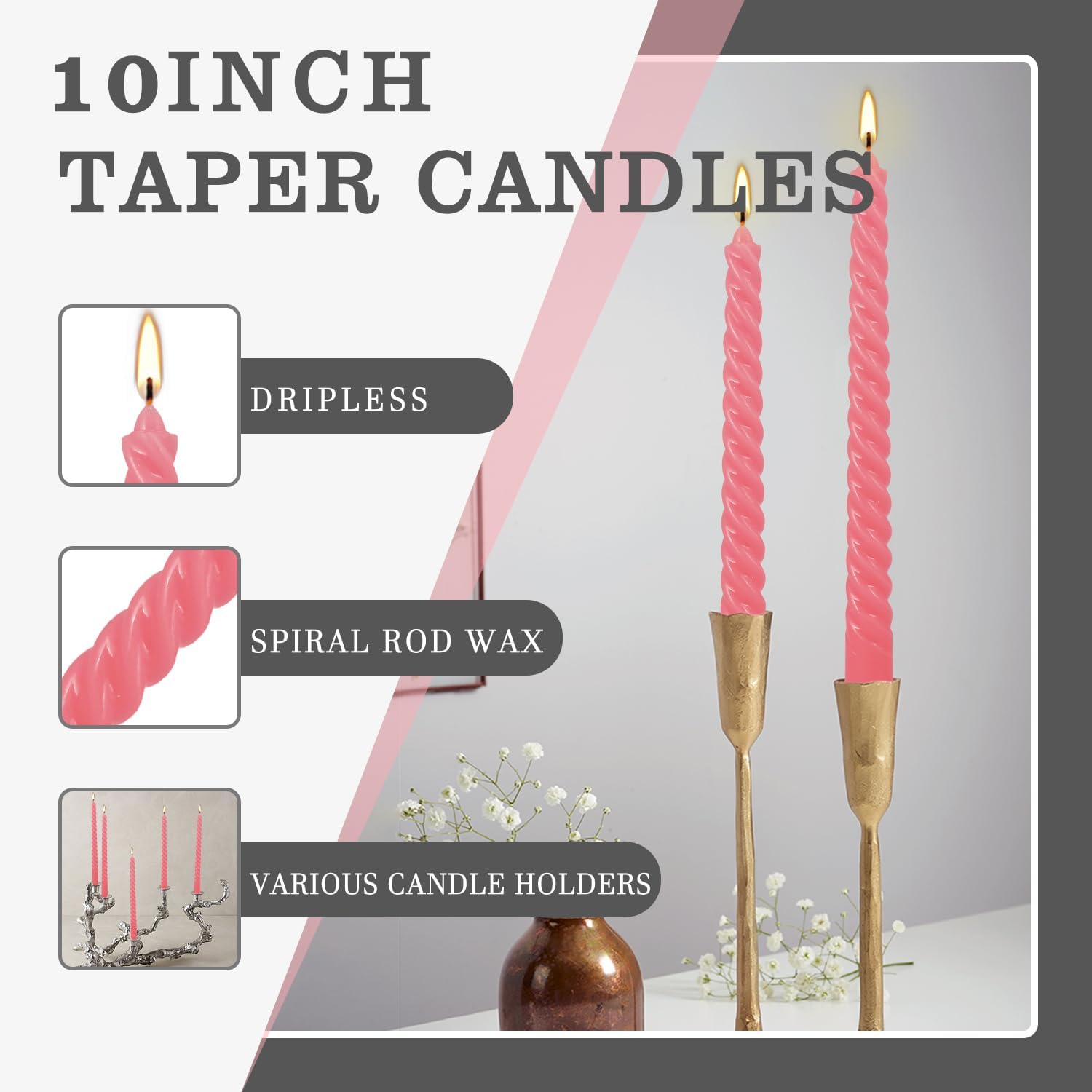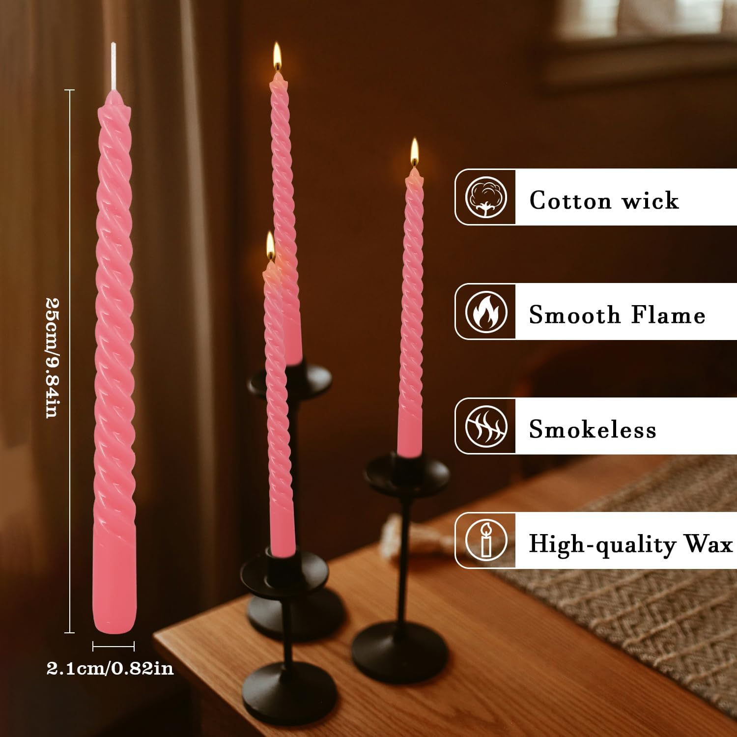 - Elegant Pink Spiral Design – Enhance your decor with these stunning 10-inch pink spiral taper candles, featuring a timeless twisted design that adds a touch of vintage charm to weddings, parties, and romantic dinners.